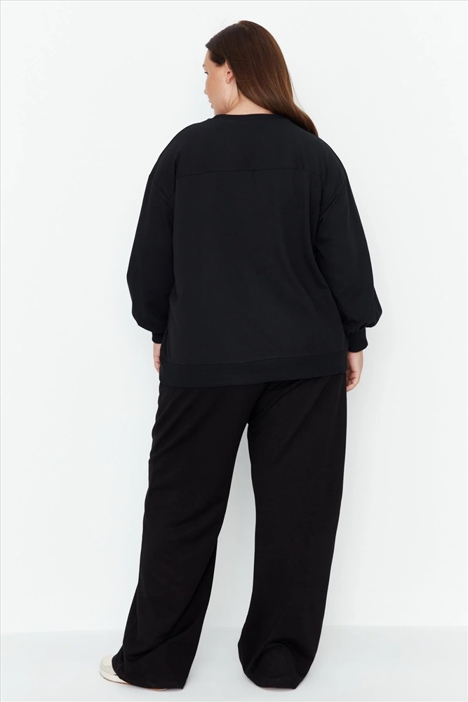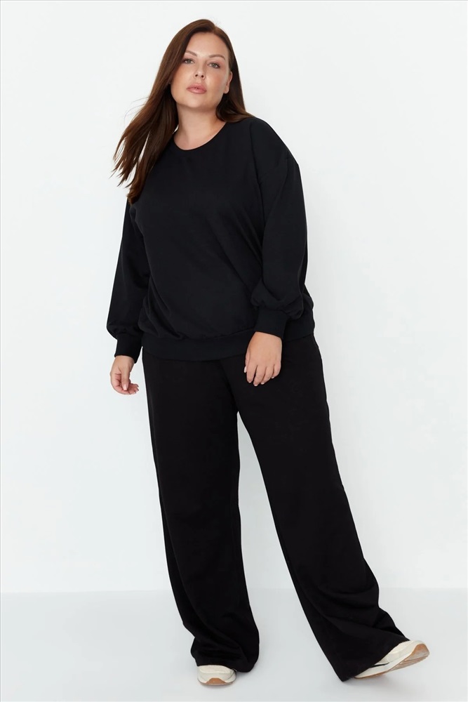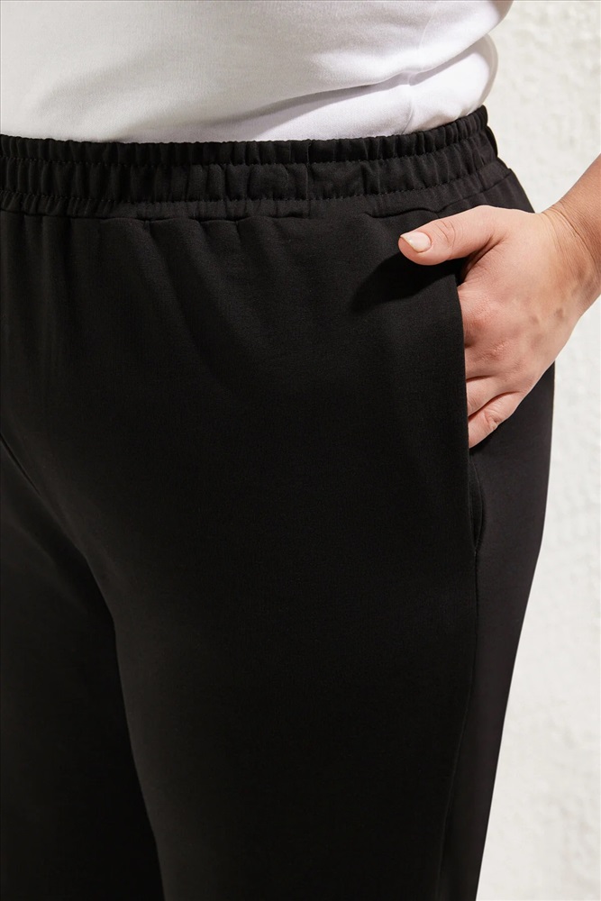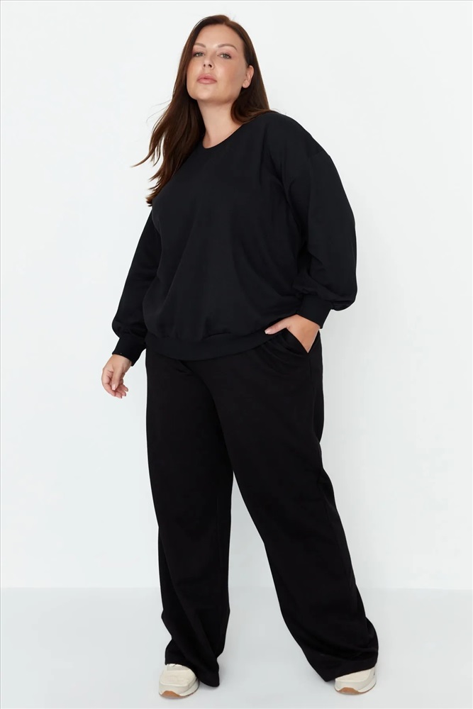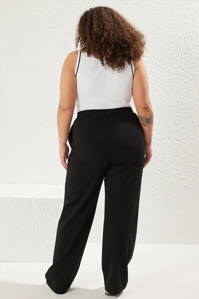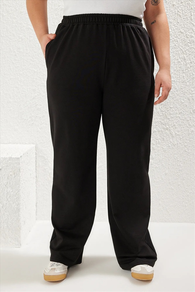 Siyah Geniş Kesim İnce Örme Büyük Beden Eşofman Altı TBBAW23AJ00007