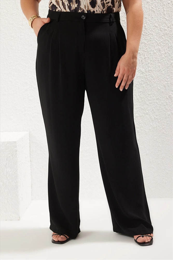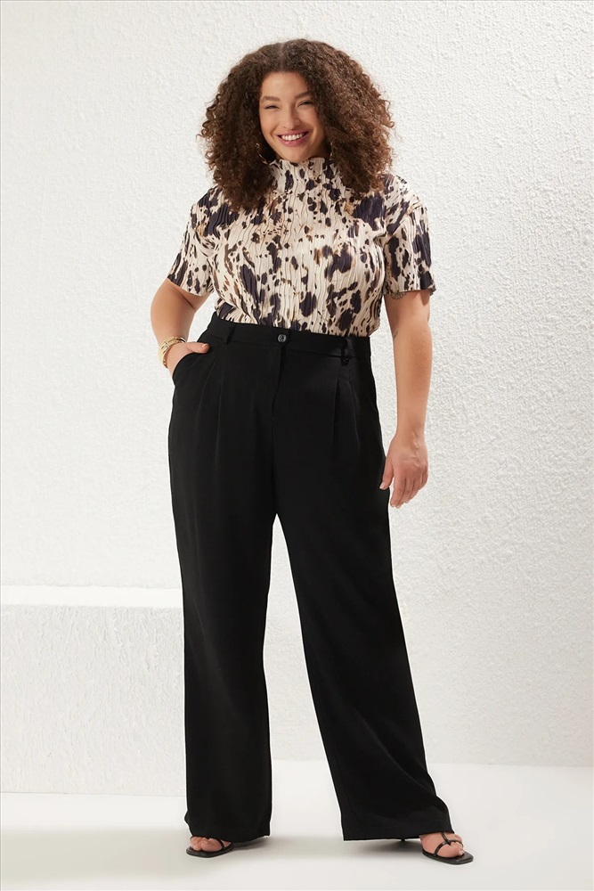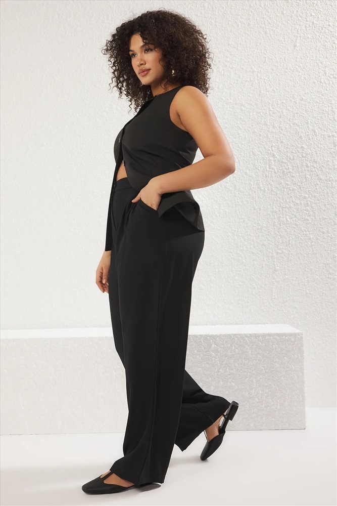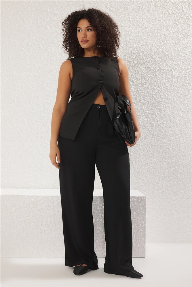 Kumaş Tipi: Dokuma Paça Tipi: Geniş Paça Bel: Yüksek Bel Siluet: Wide Leg Renk: Siyah Kalıp: Wide Leg Desen: Düz Ortam: Business Boy: Uzun Materyal Bileşeni: 100% Polyester Dokuma Tipi: Finike Persona: Smart/Office Yıkama Talimatı: T10 Koleksiyon: Casual / Günlük Sezon: Yaz Menşei: TR Комментарии к товару