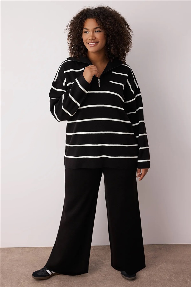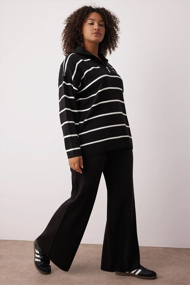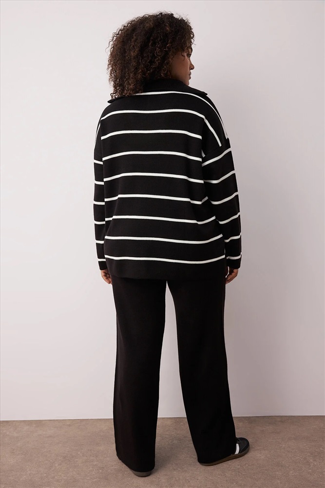 Kumaş Tipi: Triko Materyal: Akrilik Kalıp: Regular Desen: Çizgili Ortam: Casual/Günlük Persona: Cool & Comfort Yaka Tipi: Devrik Yaka Dokuma Tipi: Tek Plaka Kol Boyu: Uzun Renk: Siyah Kol Tipi: Düşük Kol Kalınlık: Orta Materyal Bileşeni: 100% Akrilik Yıkama Talimatı: T41 Paça Tipi: Boru Paça Boy: Regular Sezon: Kış Menşei: TR Комментарии к товару