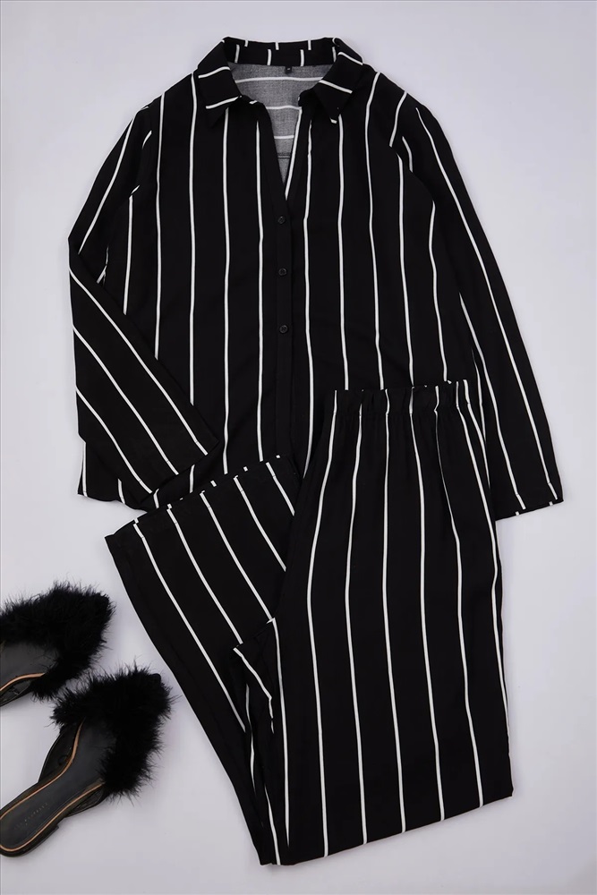 Renk: Siyah Kol Tipi: Standart Kol Desen: Çizgili Yaka Tipi: Gömlek Yaka Paça Boyu: Uzun Materyal: Viskoz Kalıp: Regular Kumaş Tipi: Dokuma Ortam: Homewear Sürdürülebilirlik Detayı: Hayır Siluet: Regular Kol Boyu: Uzun Dokuma Tipi: Shally Alt-Üst Takım: Gömlek-Pantolon Persona: Cool & Comfort Materyal Bileşeni: 100% Viskoz Yıkama Talimatı: T01 Paça Tipi: Geniş Paça Koleksiyon: Büyük Beden Boy: Regular Sezon: Kış Menşei: TR Комментарии к товару