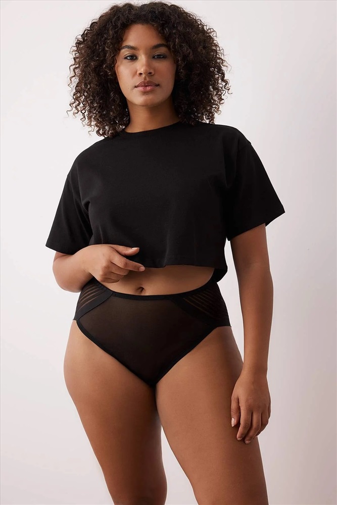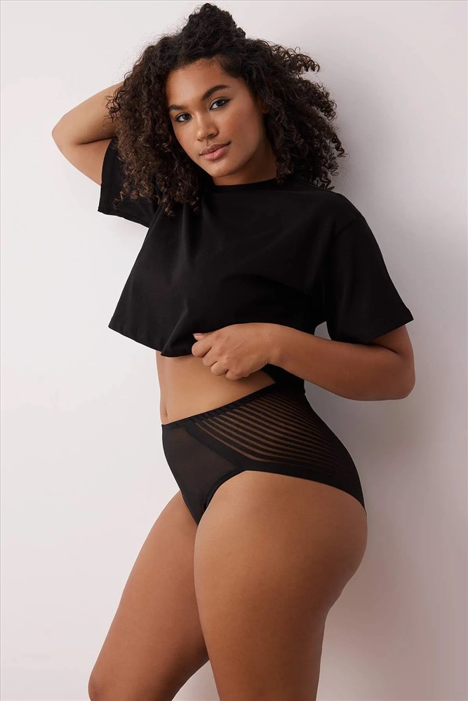 Siyah Çizgili Transparan Micro Hipster Büyük Beden Külot TBBSS25CM00005