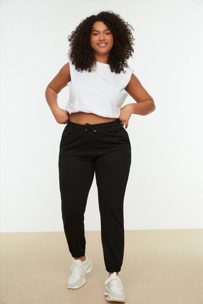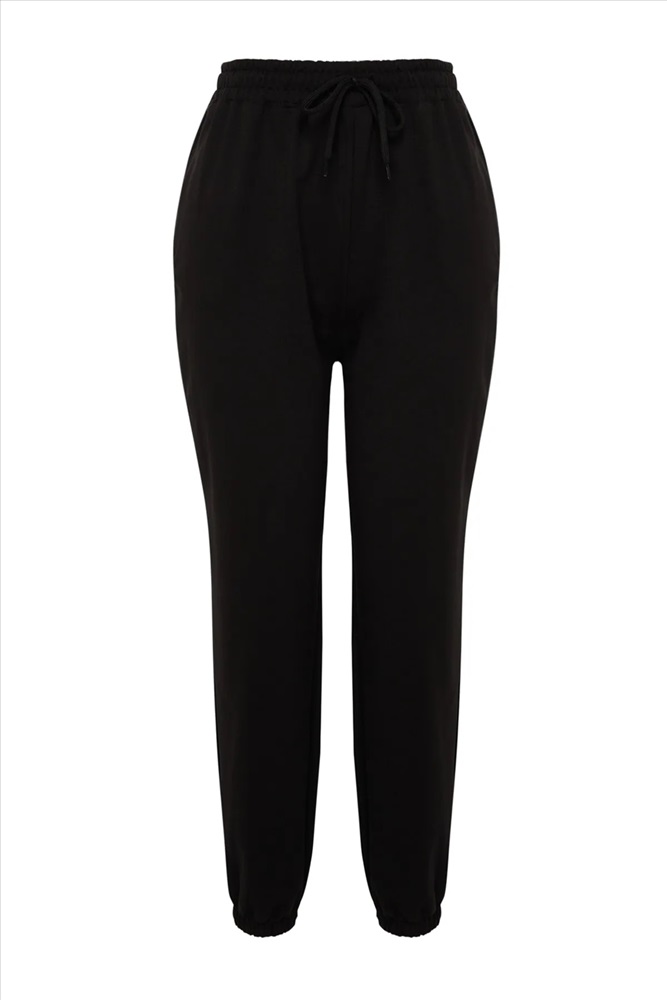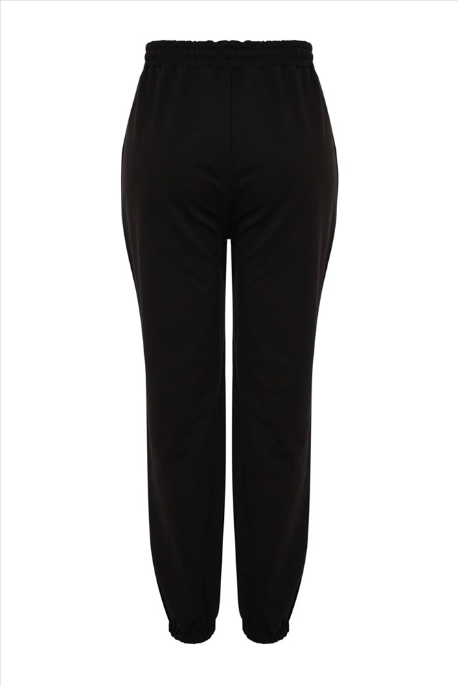 Siyah Jogger Paçası Lastikli Örme Büyük Beden Eşofman Altı TBBSS22EA0065