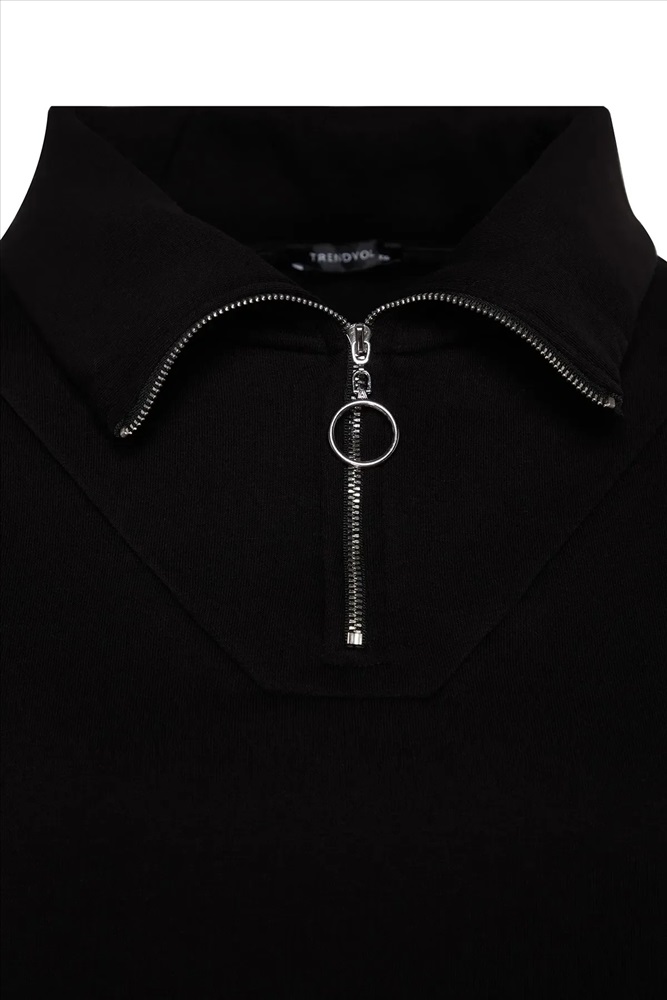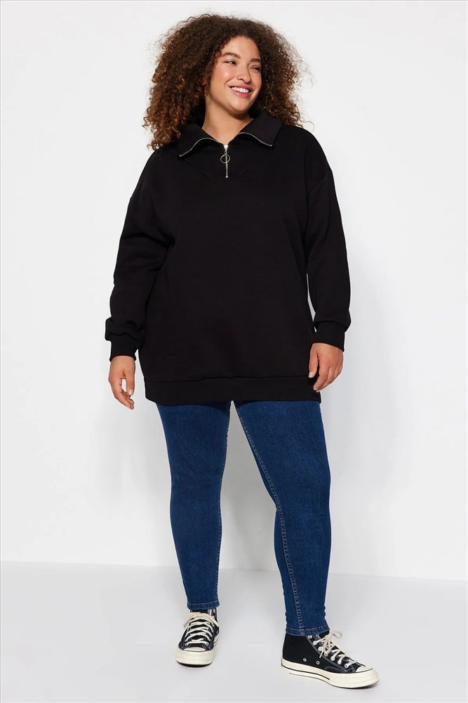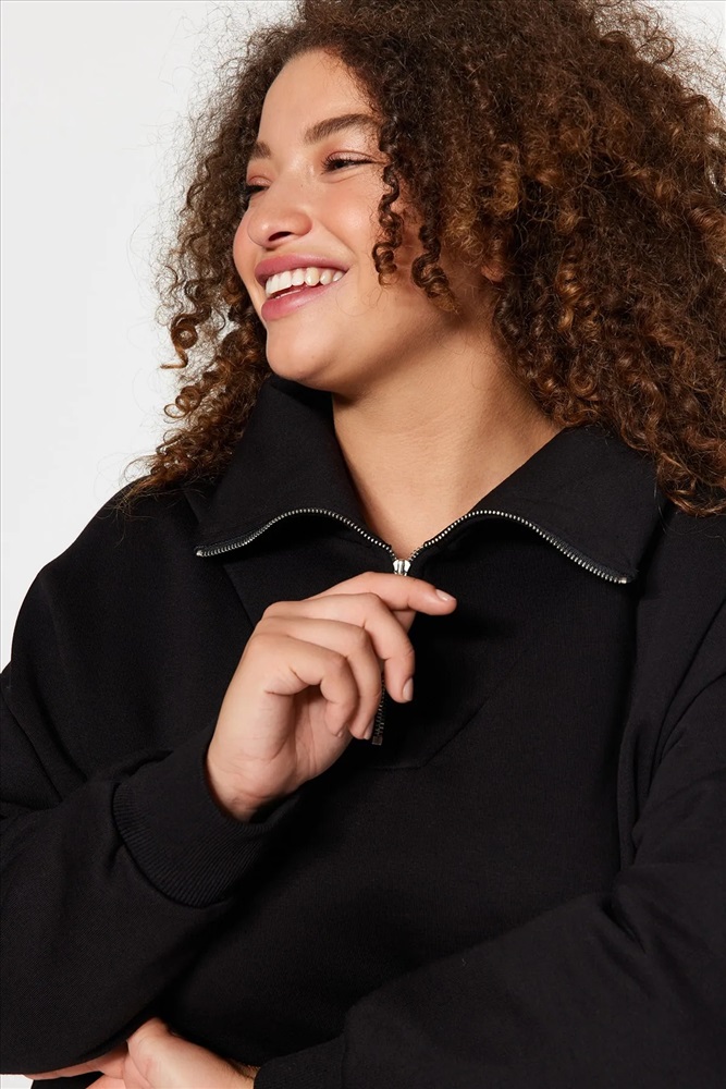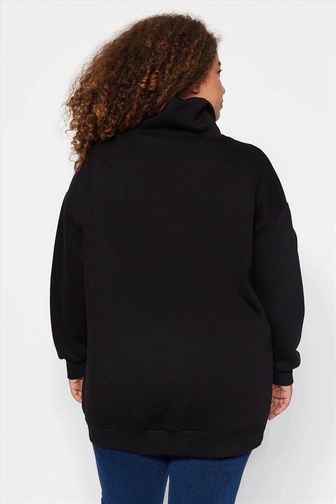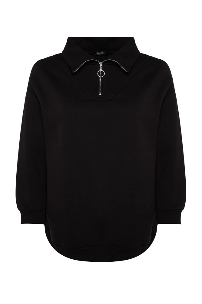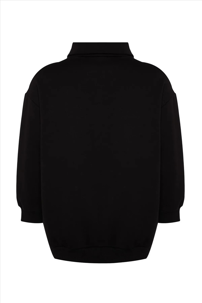 Siyah Kalın İçi Polarlı Fermuarlı Örme Sweatshirt TBBAW24AO00017