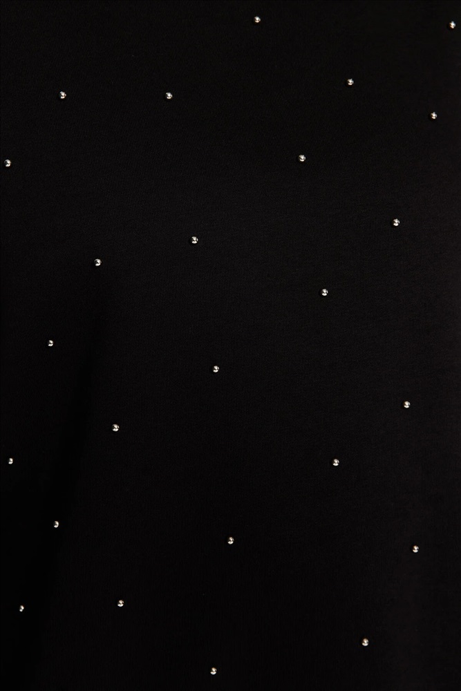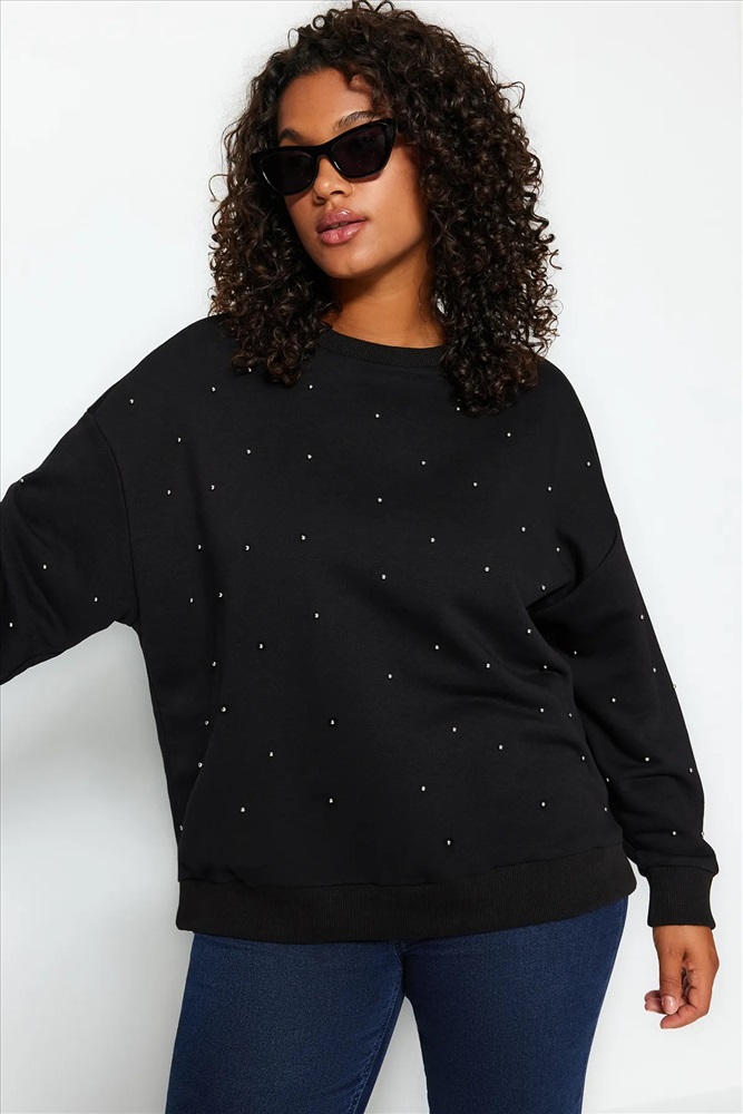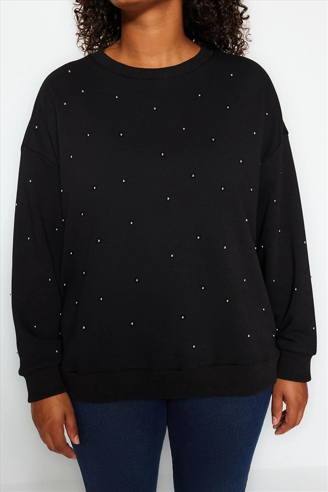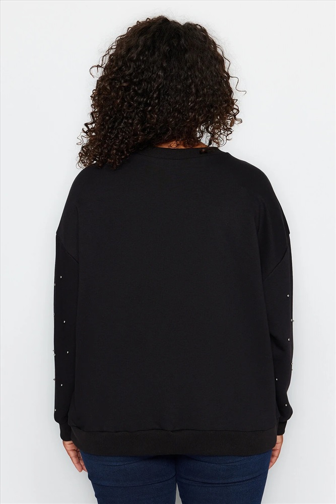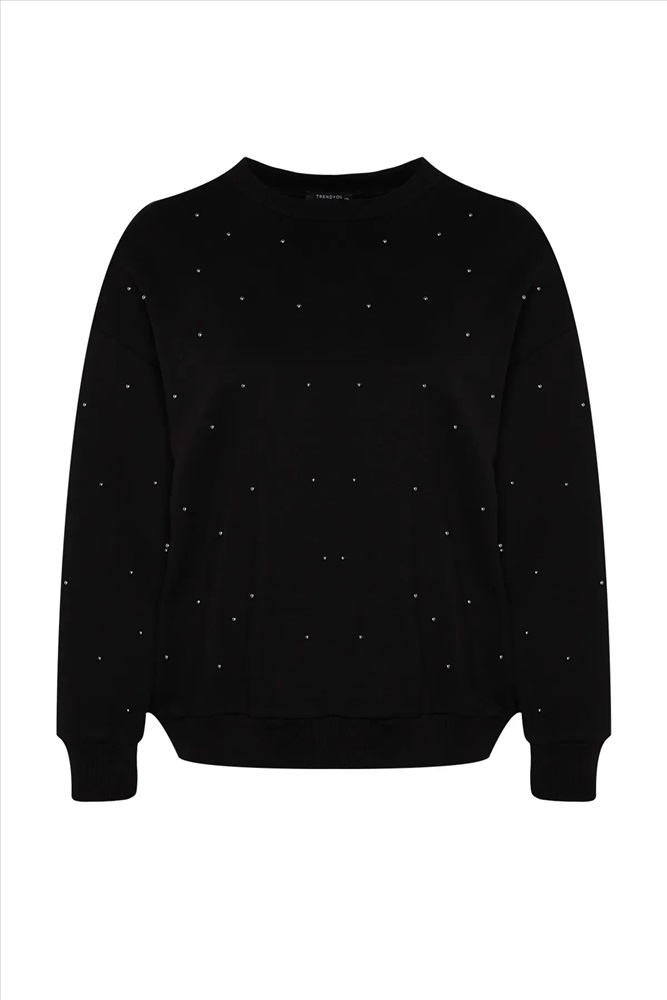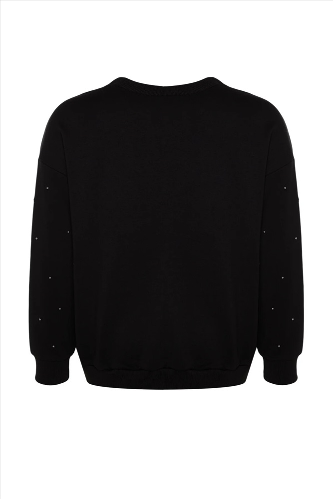 Siyah Kalın Taşlı Detaylı Örme Büyük Beden Sweatshirt TBBAW24SW00000
