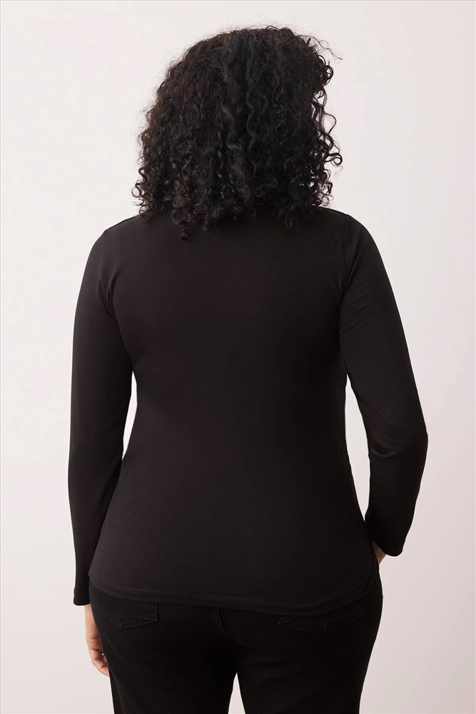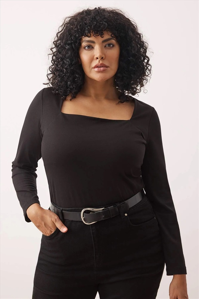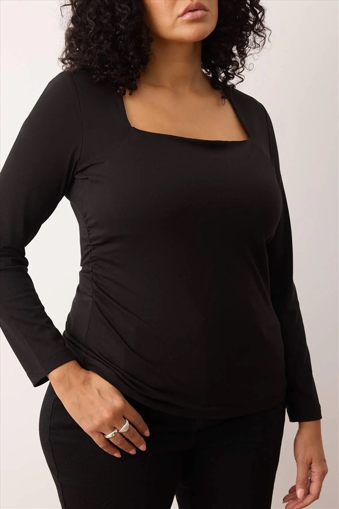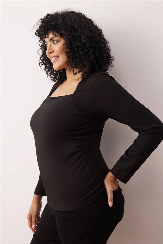 Siyah Kare Yaka Büzgü/Drape Detaylı Slim/Vücuda Oturan Örme Büyük Beden Bluz TBBAW26AF00022