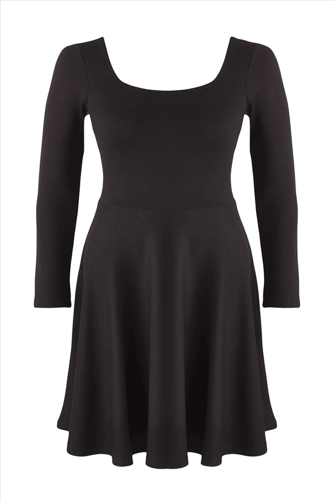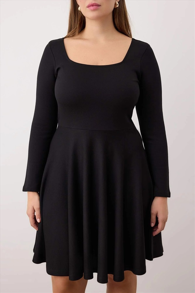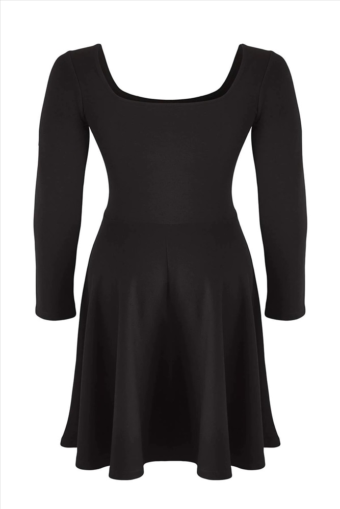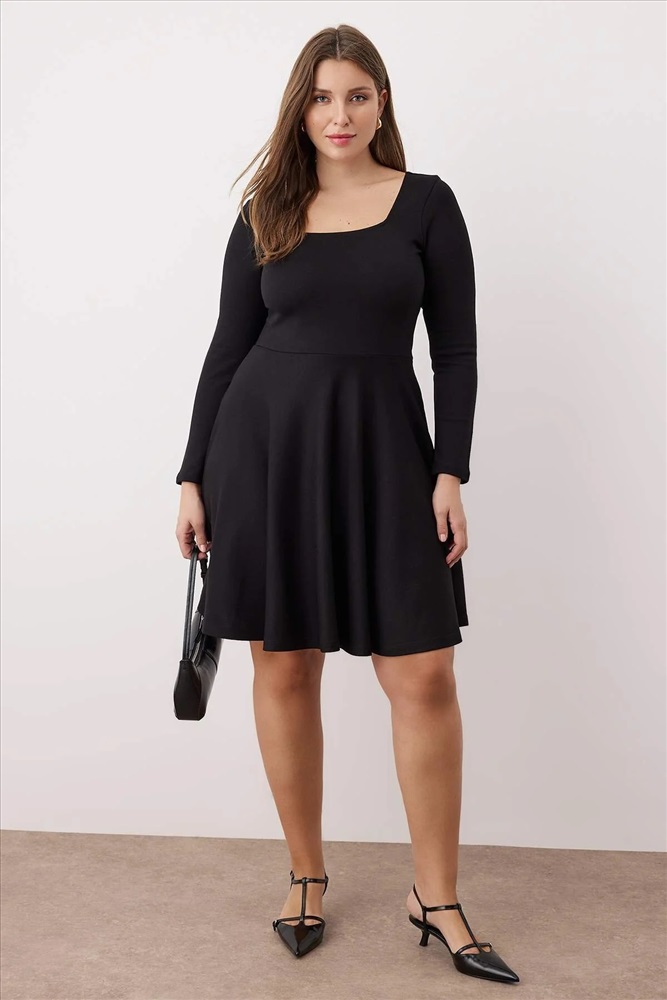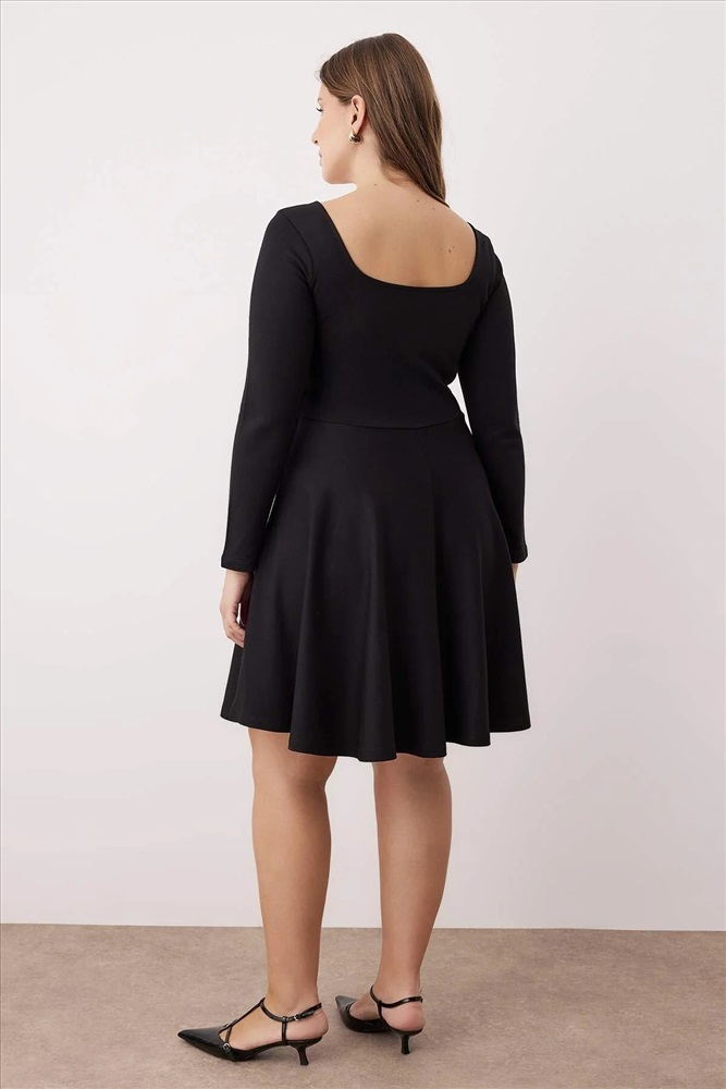Siyah Kare Yaka Skater Mini Örme Büyük Beden Elbise TBBAW26AH00058