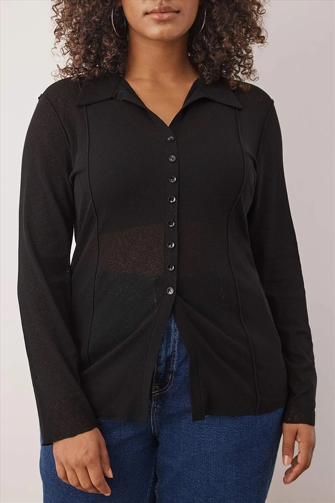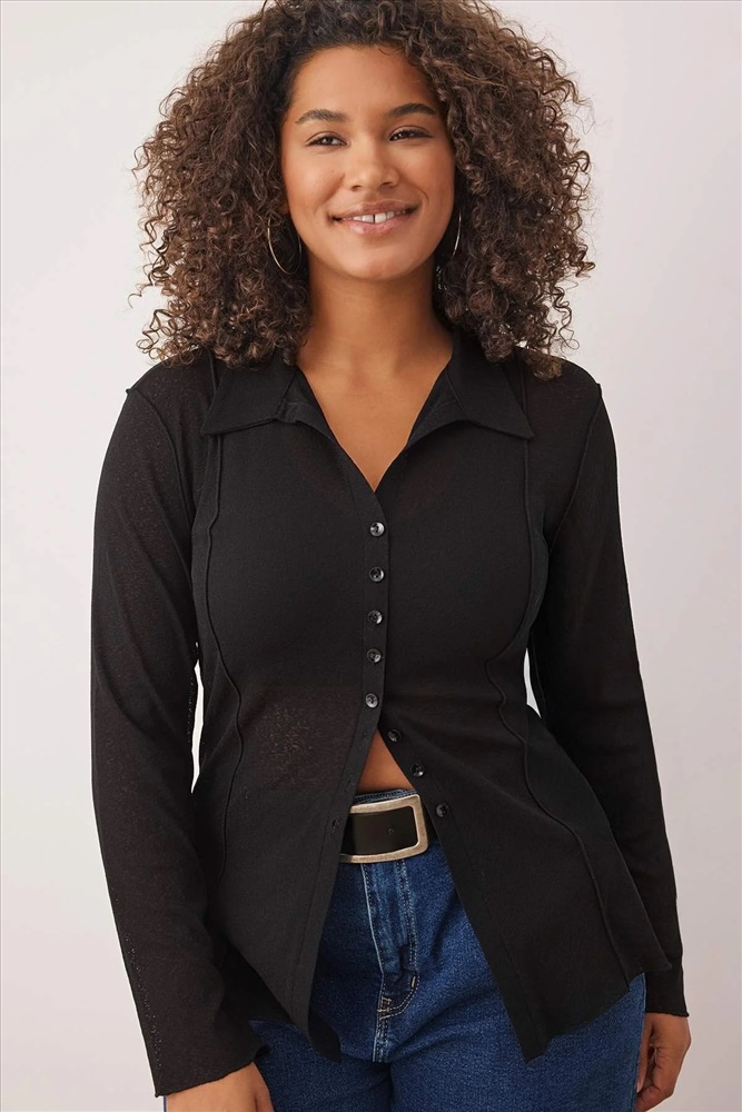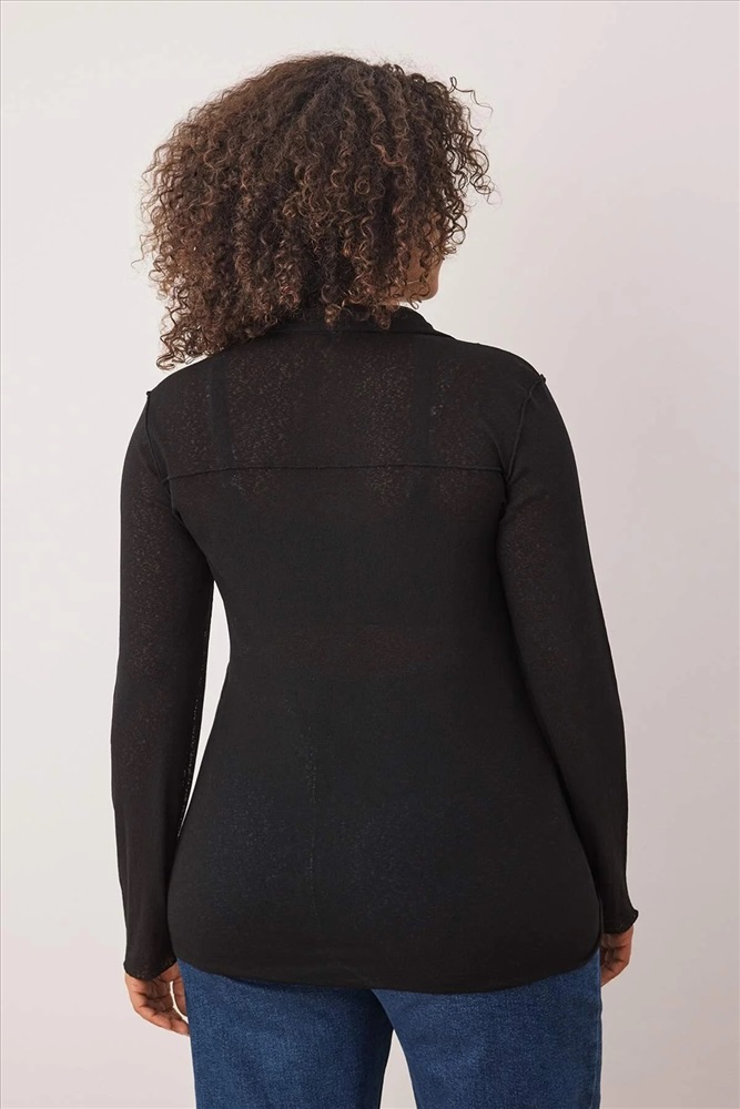 Siyah Köpük Örme Büyük Beden Bluz TBBAW26AF00044