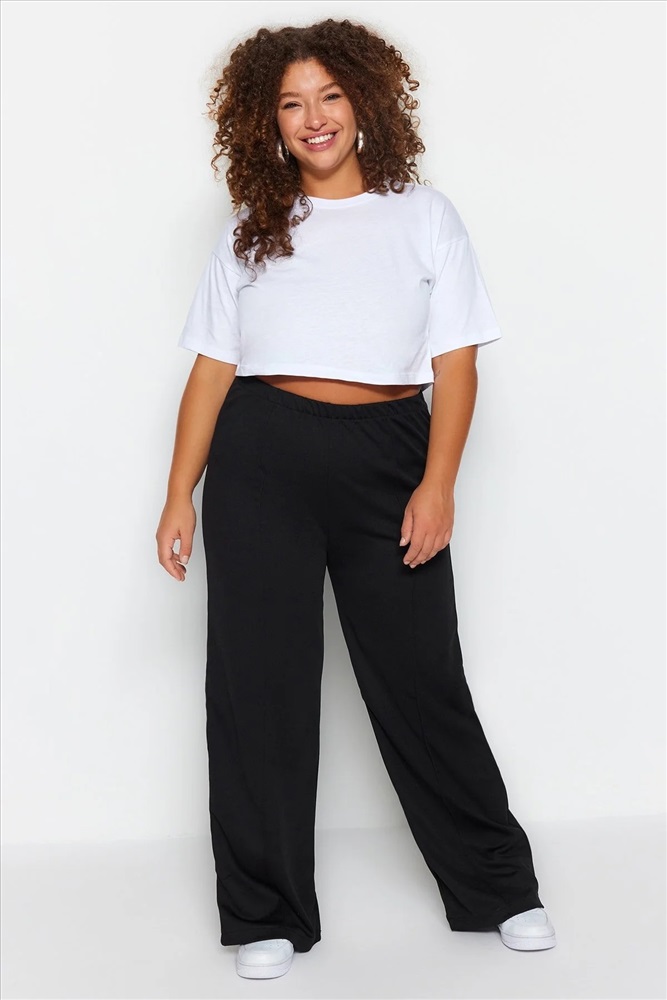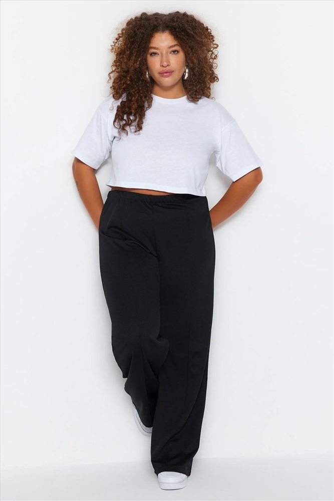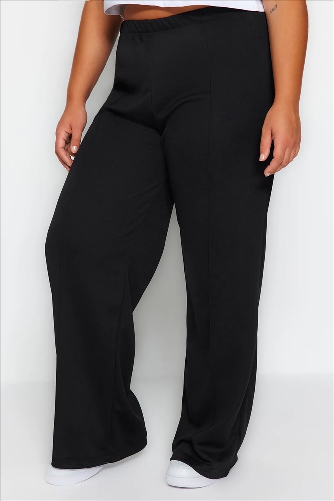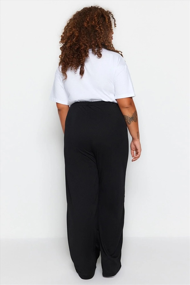 Siyah Krep Yüksek Bel Nervürlü Örme Pantolon TBBSS23AR00021