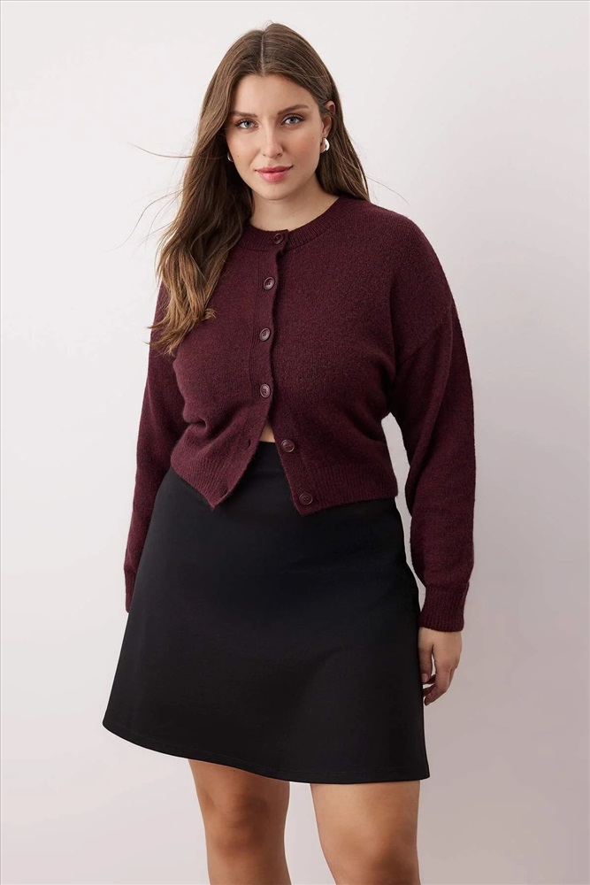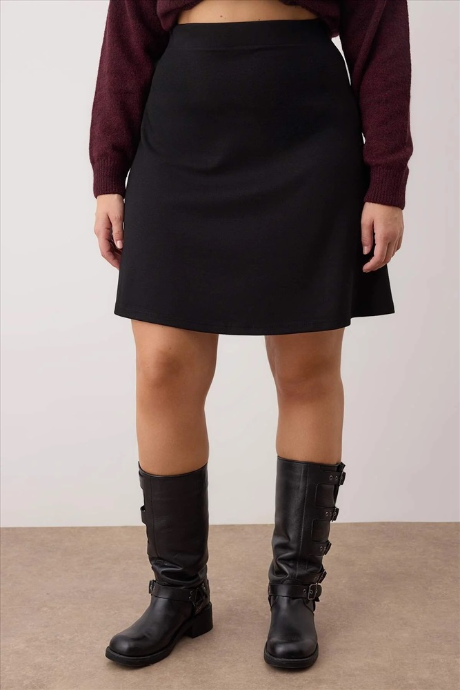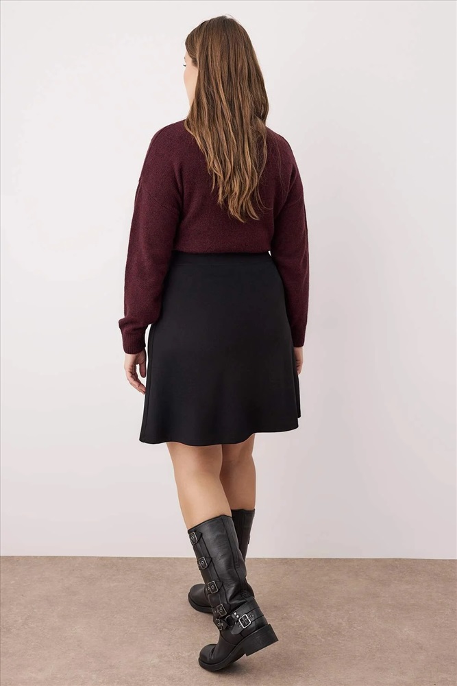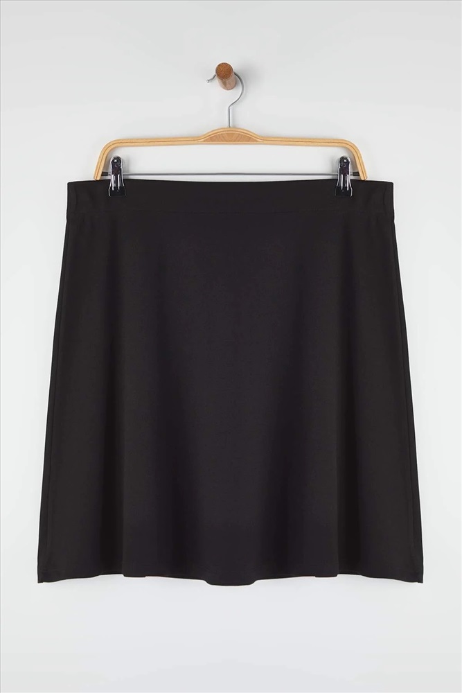 Siyah Kısa Örme Büyük Beden Etek TBBAW26AZ00024