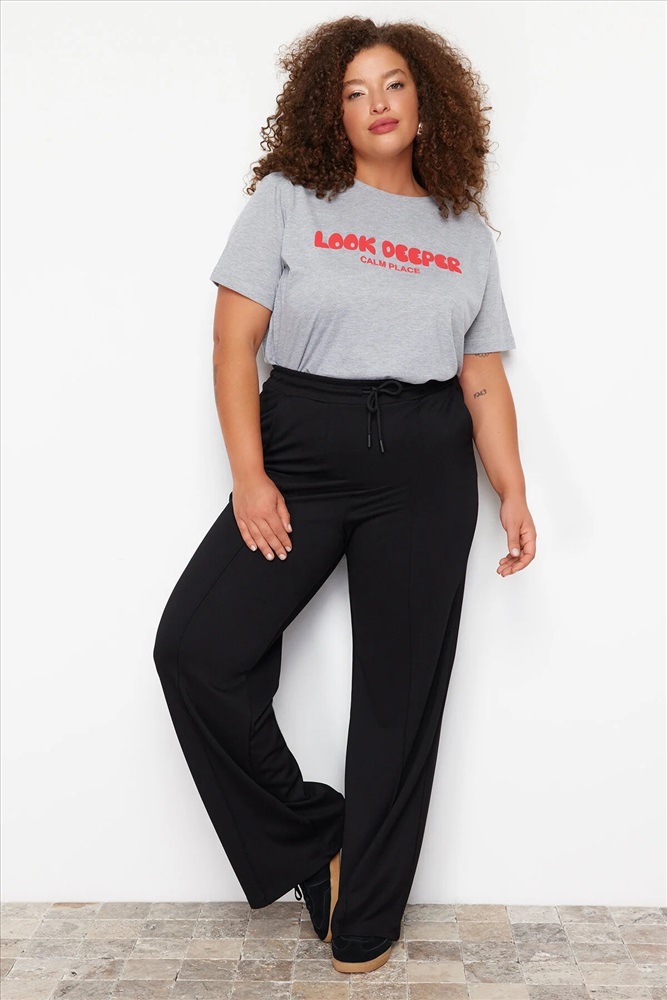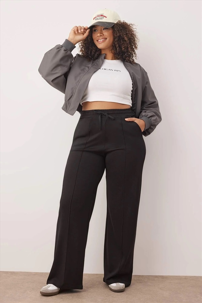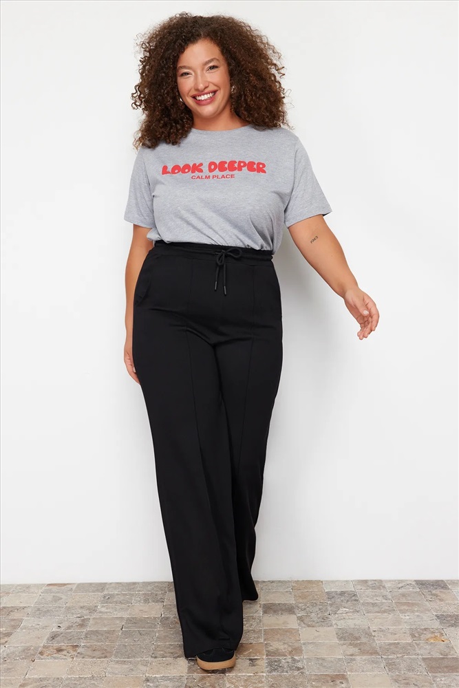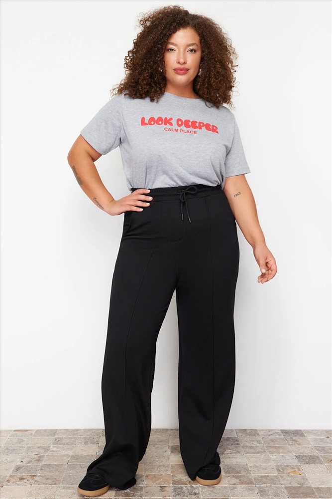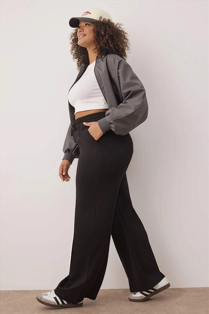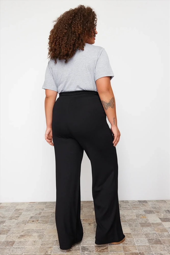 Siyah Nervür Detaylı Örme Pantolon TBBSS24AY00004