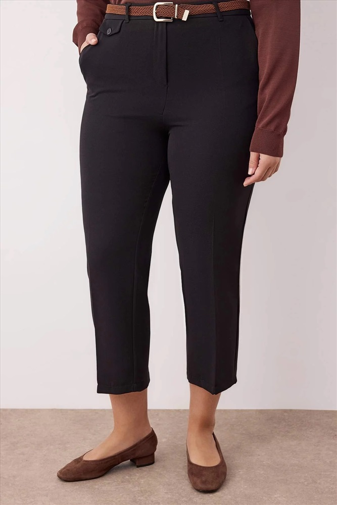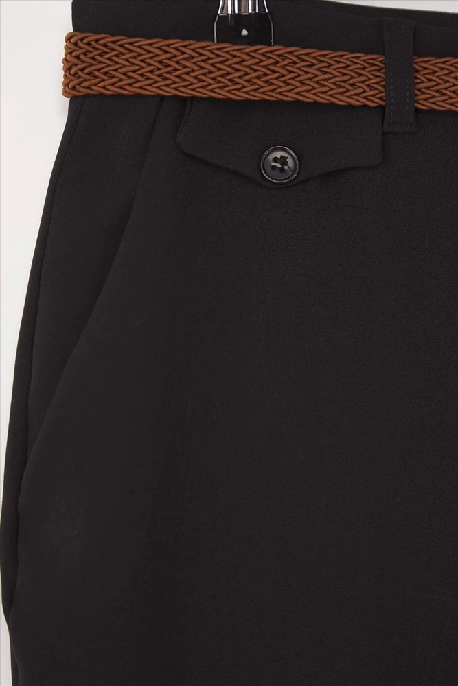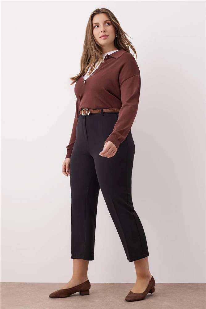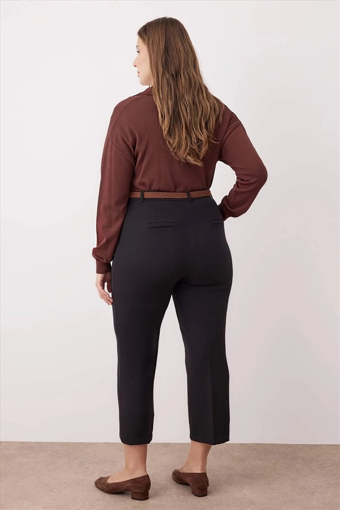 Siyah Normal Bel Boru Paça Büyük Beden Dokuma Pantolon TBBAW26AR00015