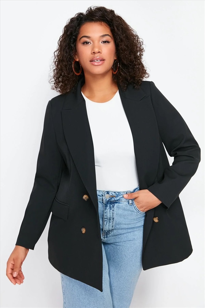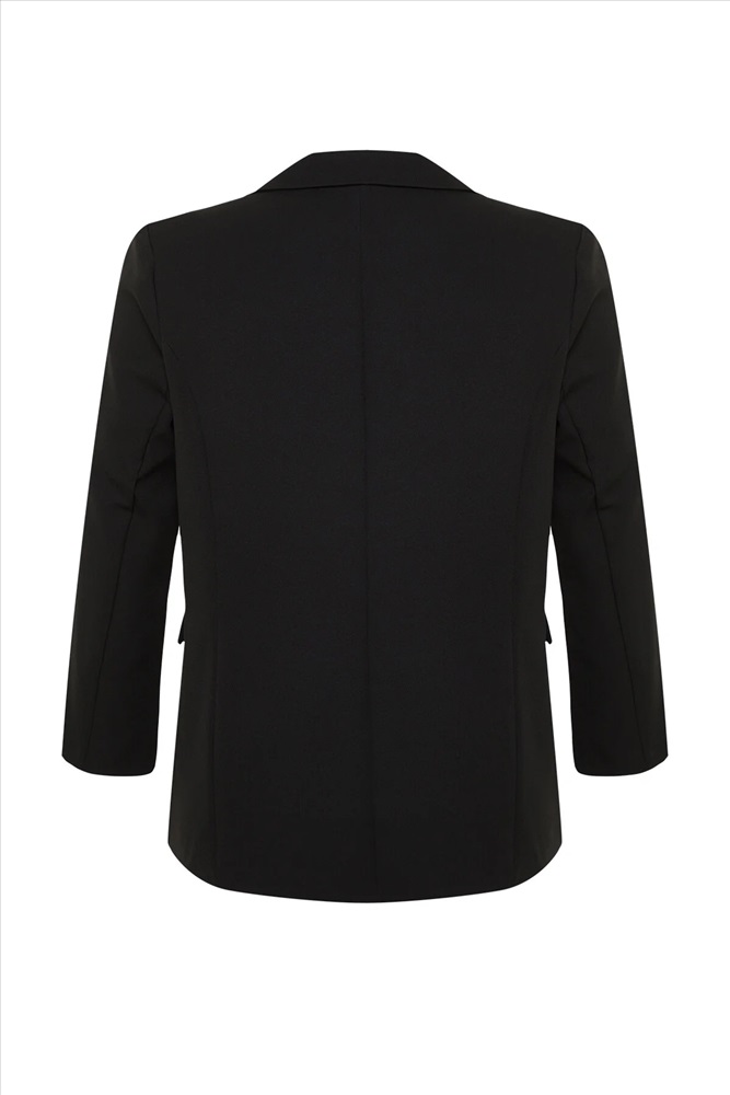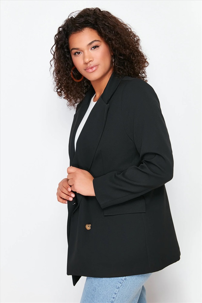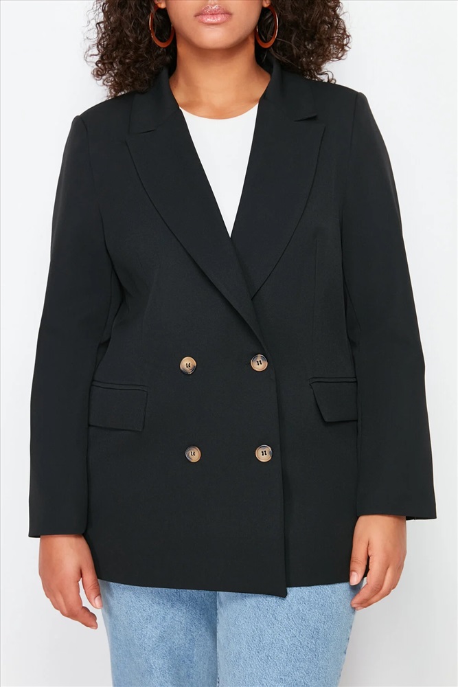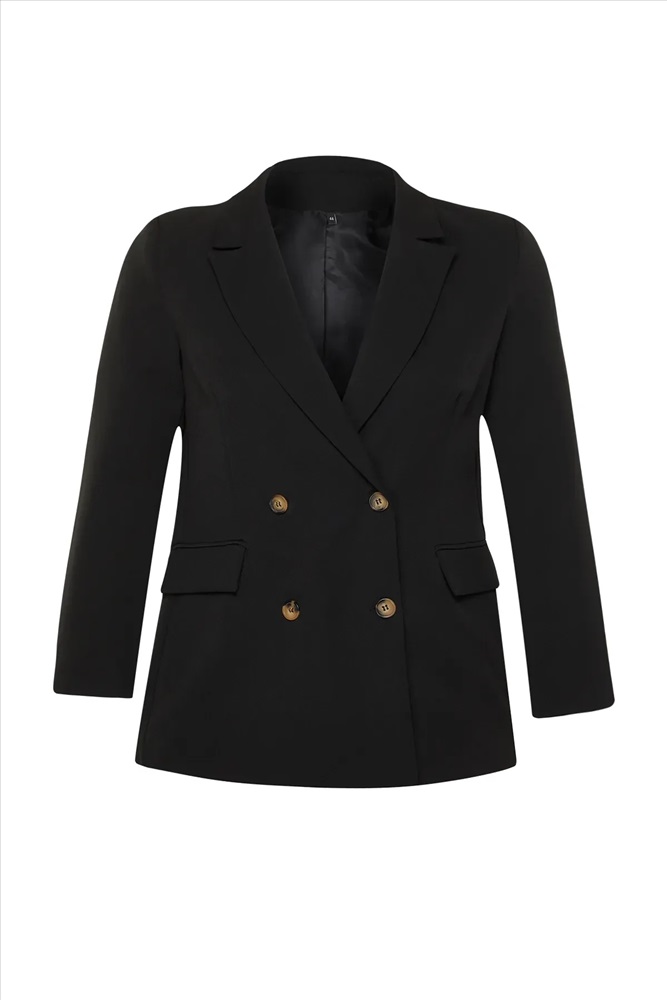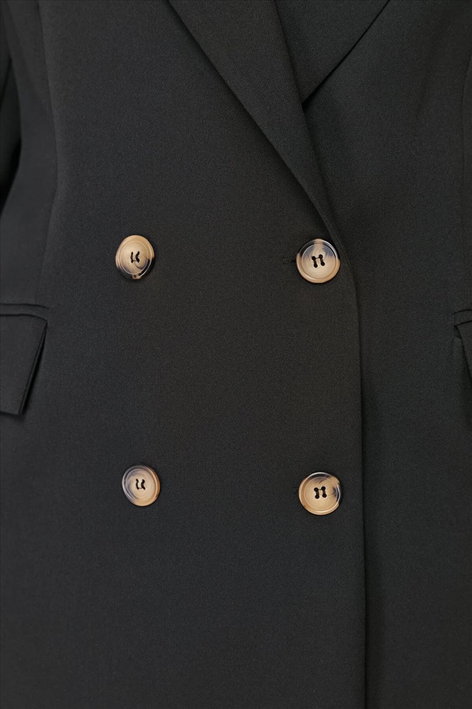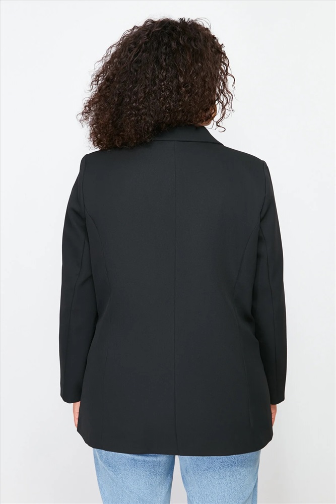 Siyah Oversize/Bol Kesim Astarlı Kruvaze Kapama Dokuma Blazer Ceket TBBSS24AG00002