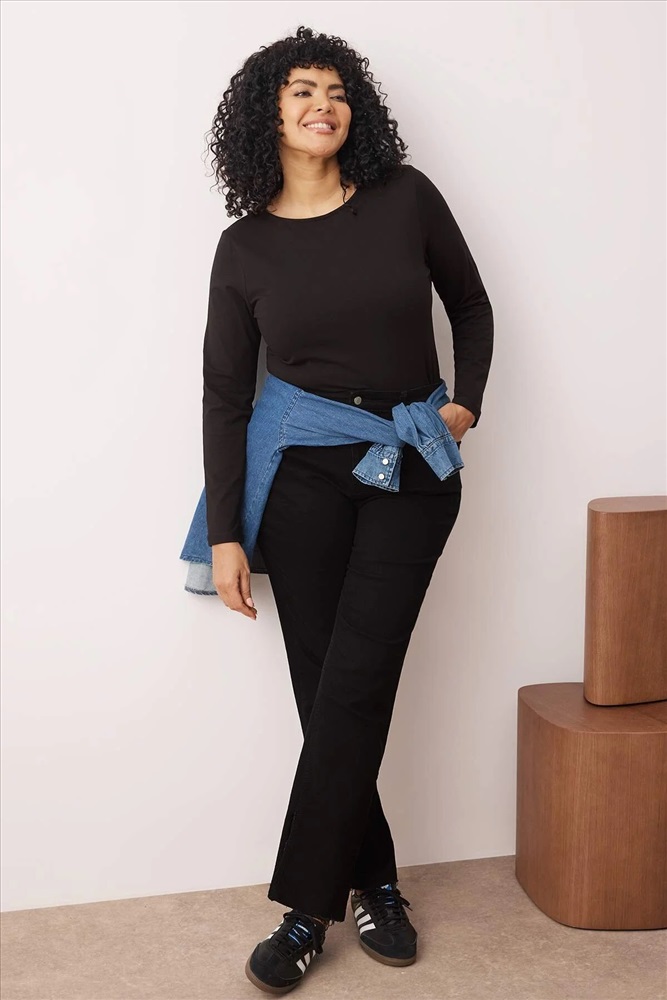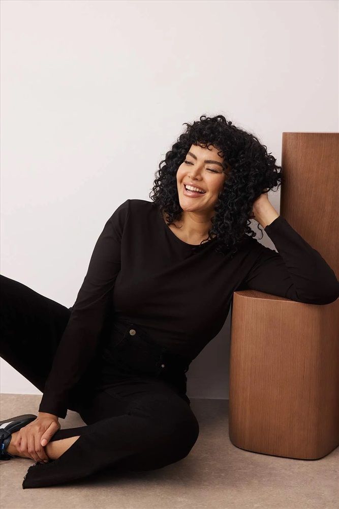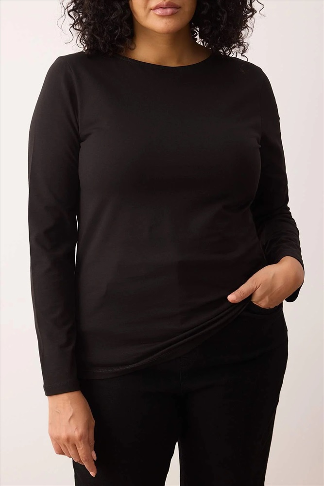 Siyah Pamuklu Kayık Yaka Fitted/Vücuda Oturan Esnek Bluz TBBAW26AF00027