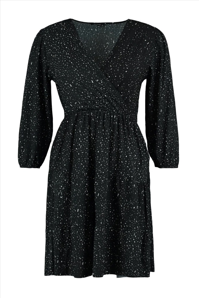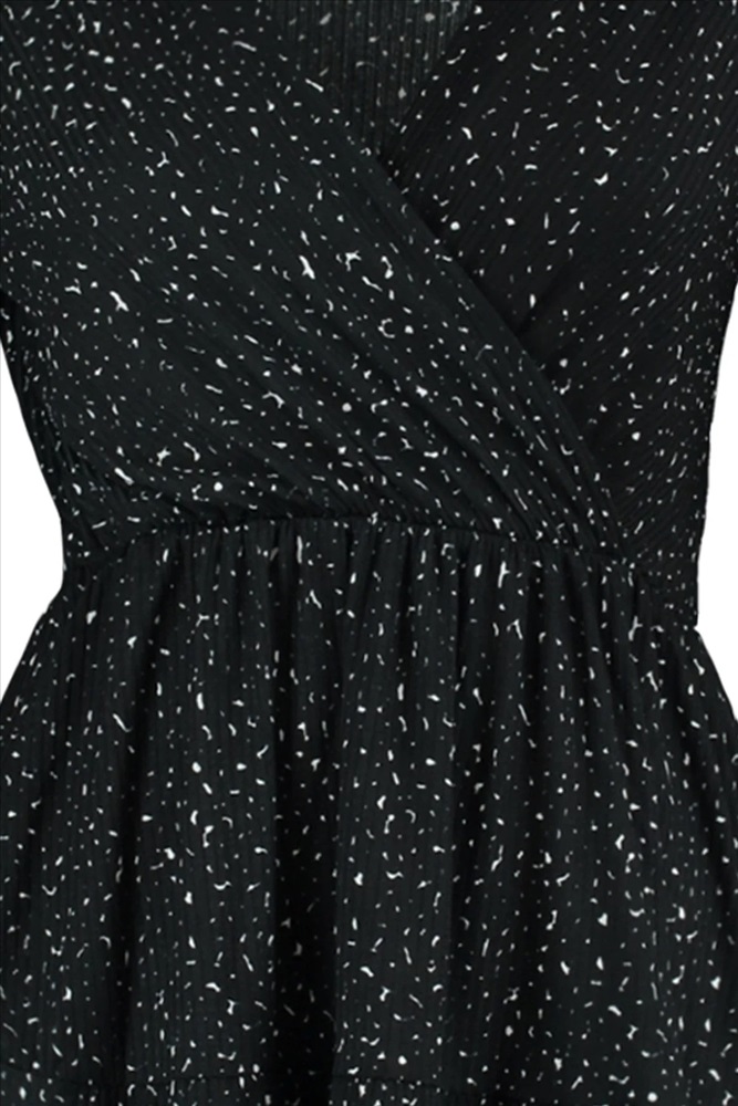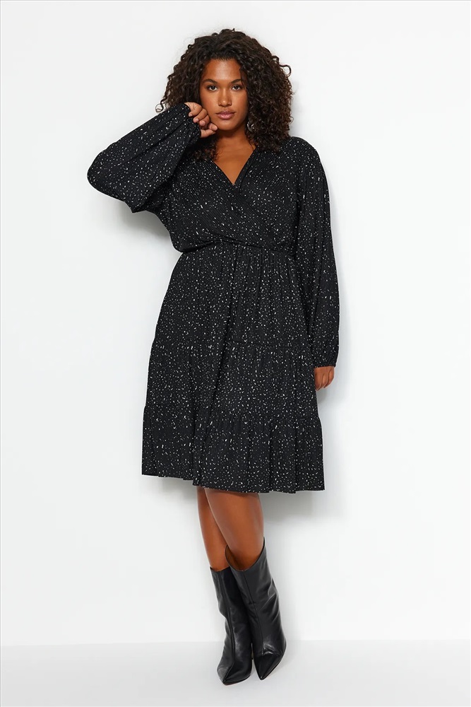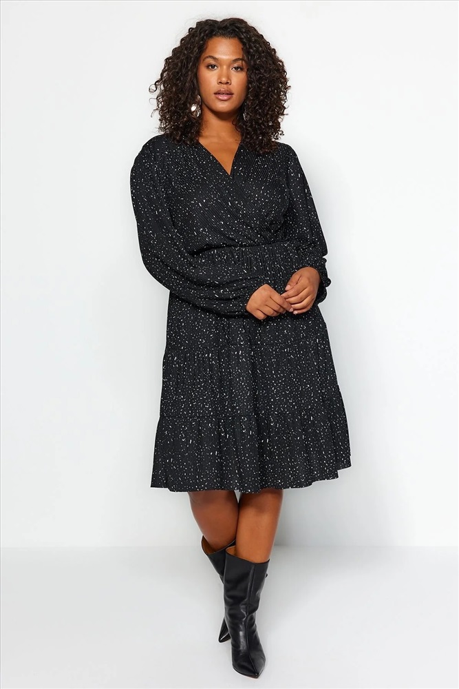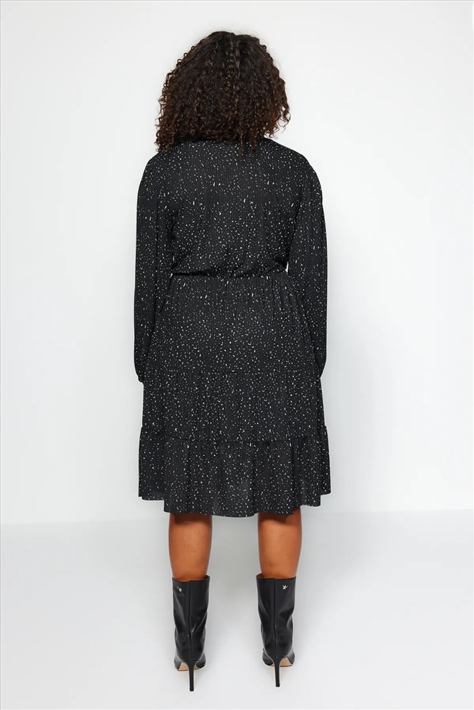 Siyah Puantiyeli A-line Mini Örme Büyük Beden Elbise TBBAW23AH00003