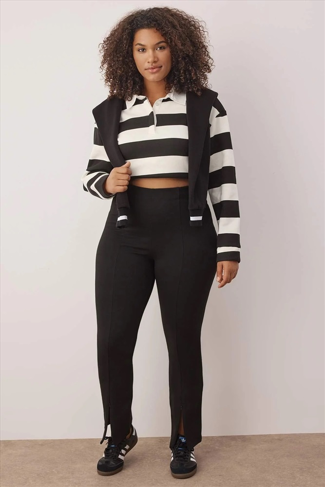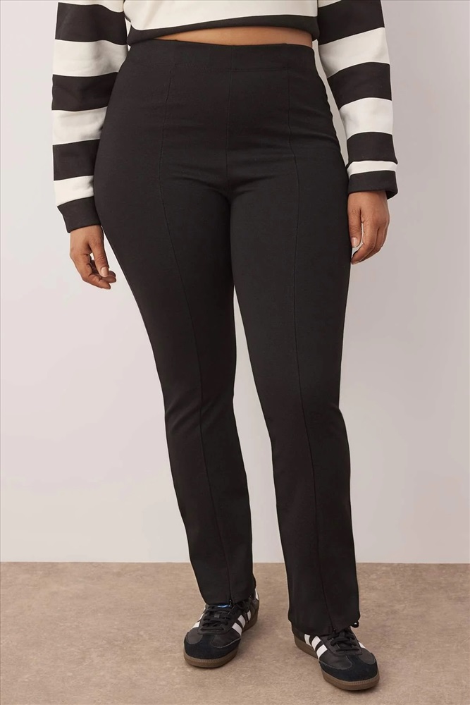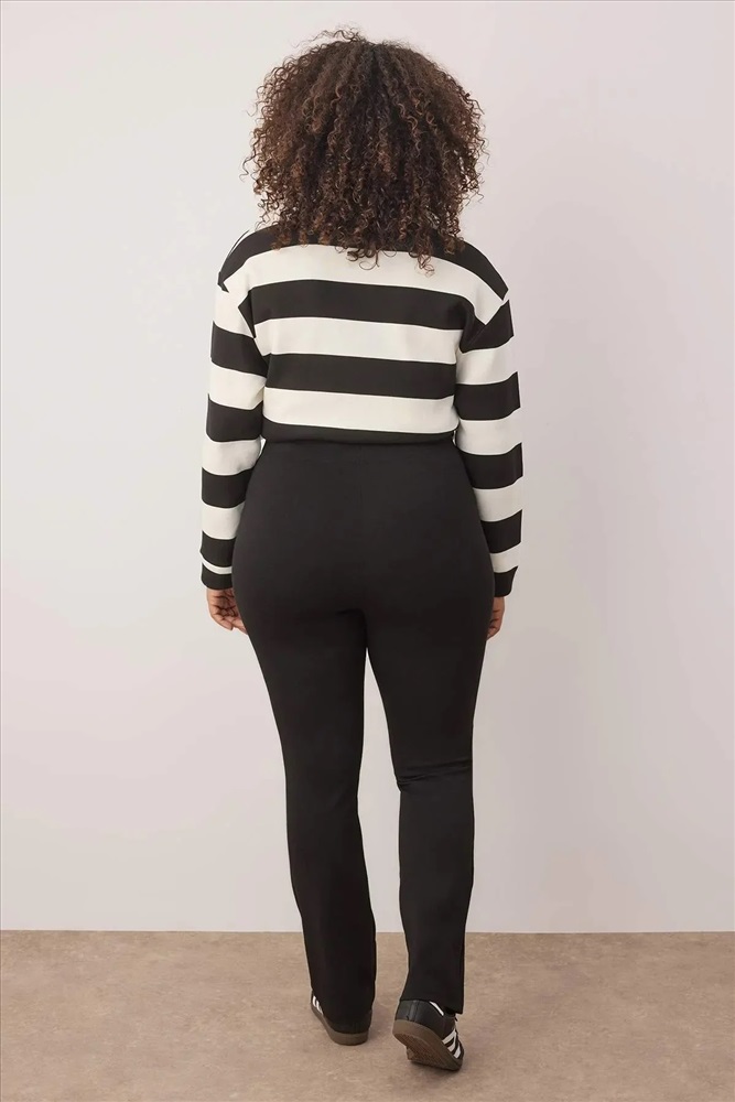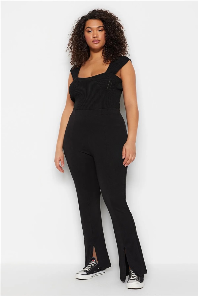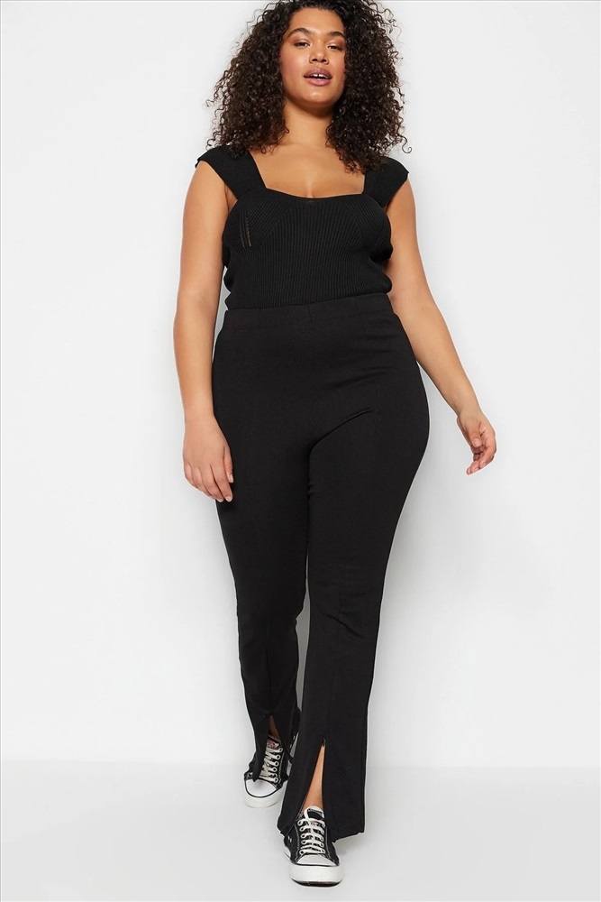 Siyah Skinny Yüksek Bel Paçası Fermuarlı Örme Büyük Beden Pantolon TBBSS23AR00011