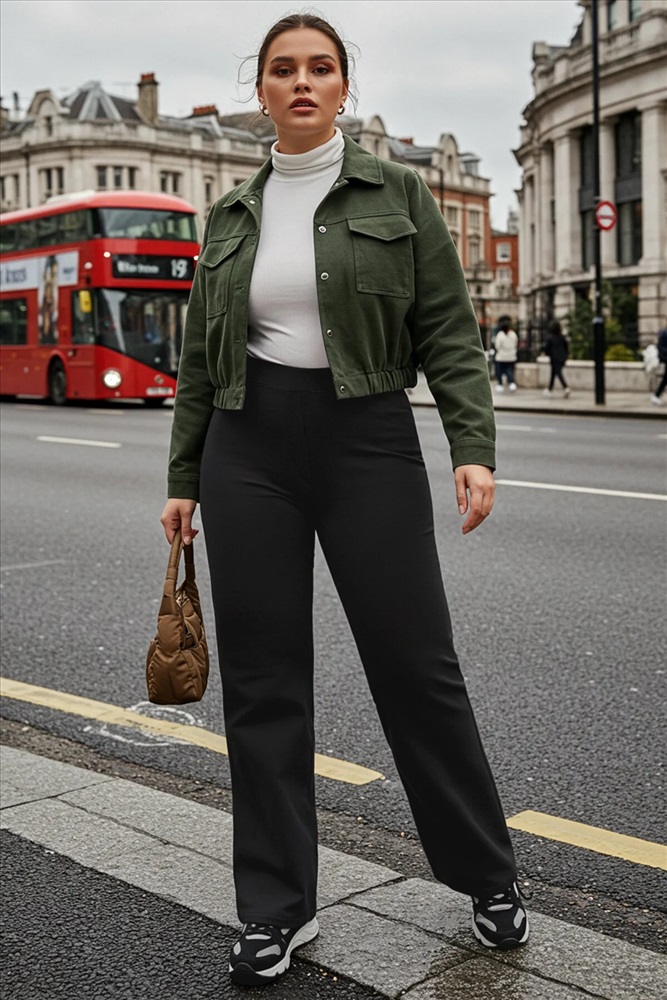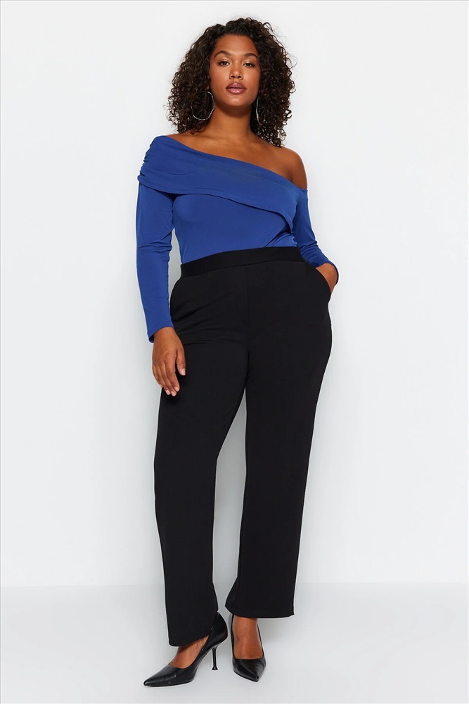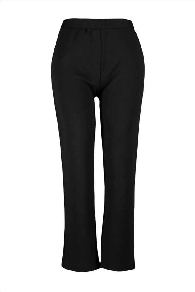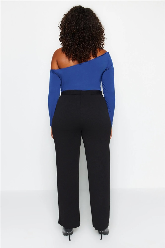 Siyah Straight Fit Yüksek Bel Krep Örme Büyük Beden Pantolon TBBAW24AR00008