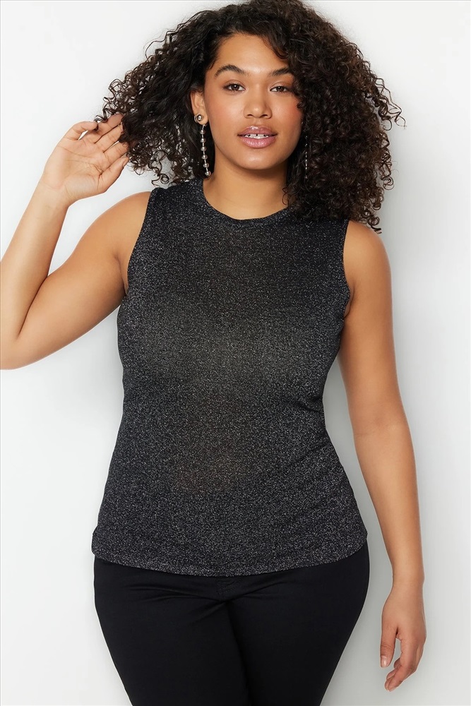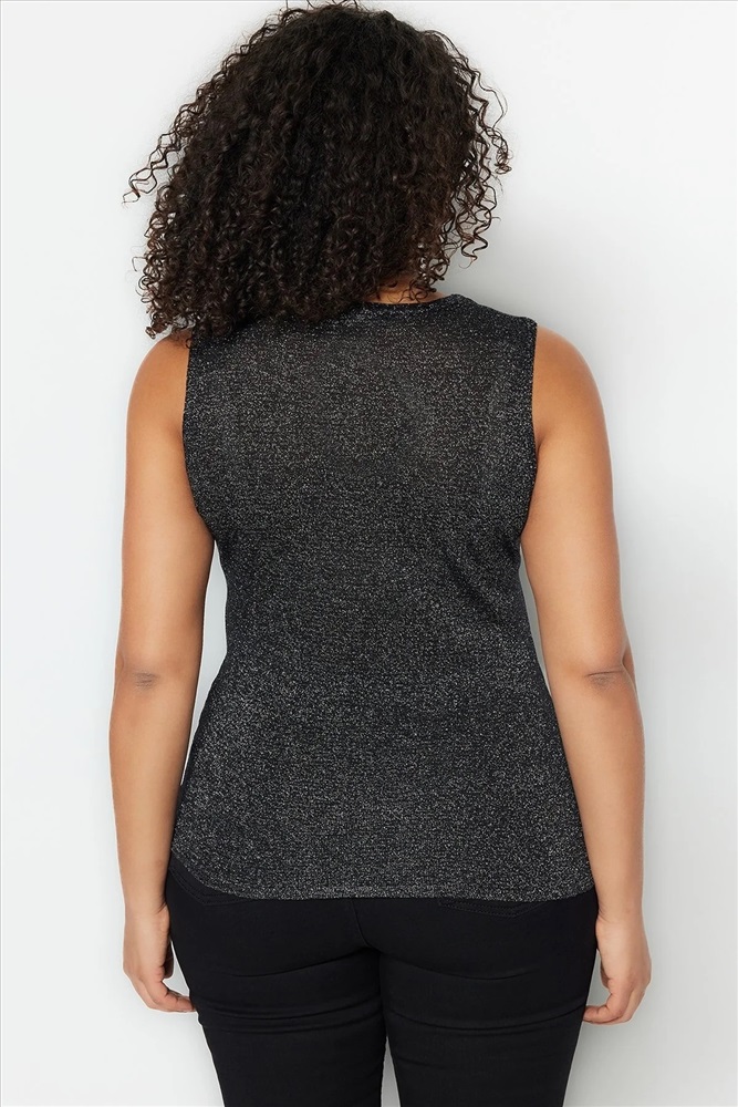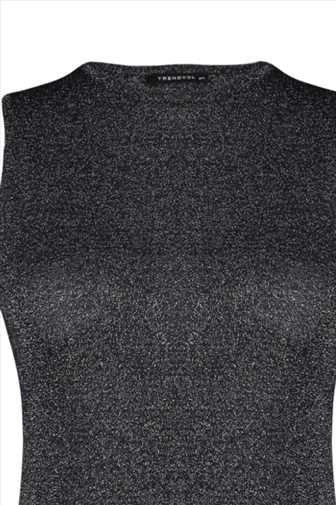 Siyah Vücudu Saran İnce Triko Parlak Bluz TBBSS23AF00019