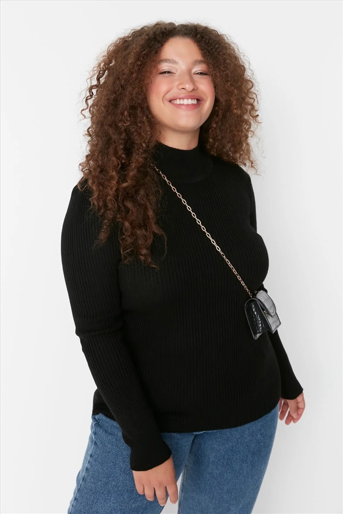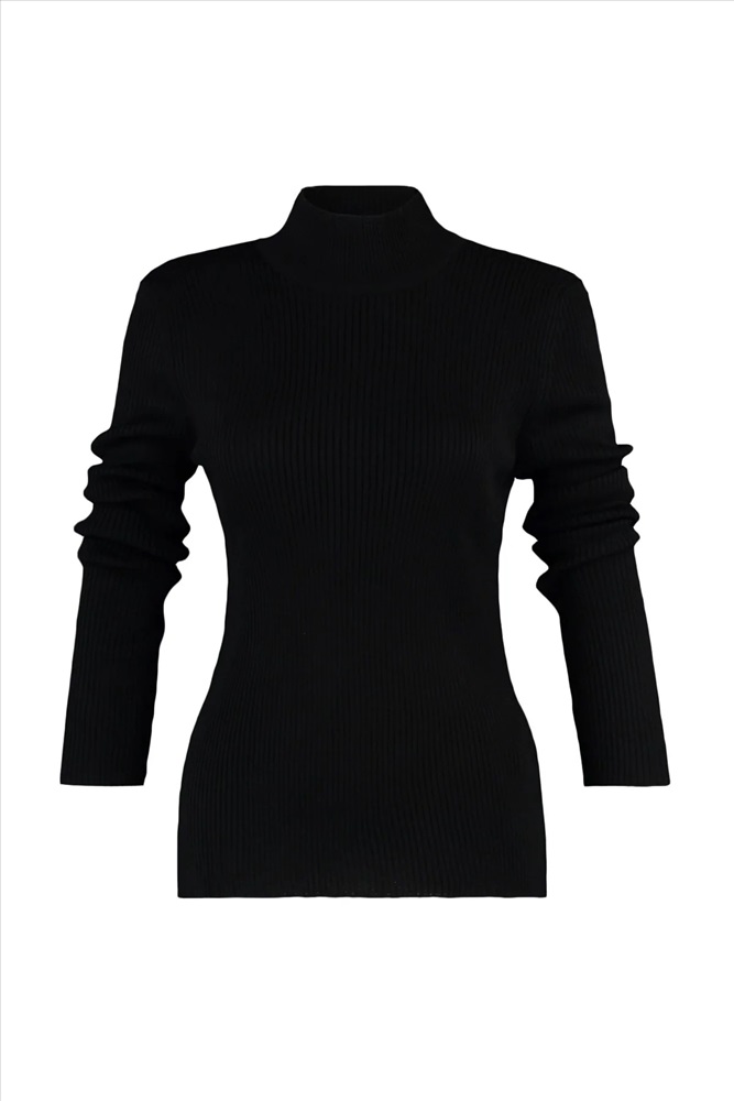Siyah Yarım Balıkçı Yaka İnce Triko Kazak TBBAW23AN00022