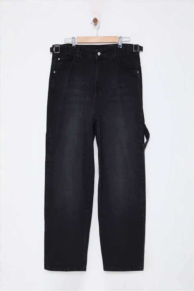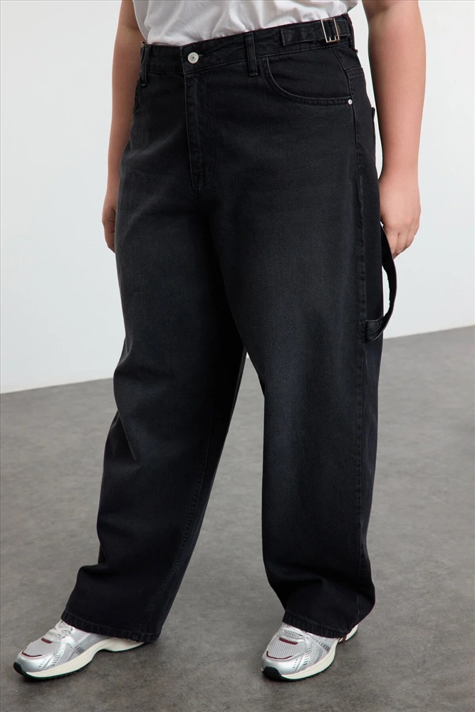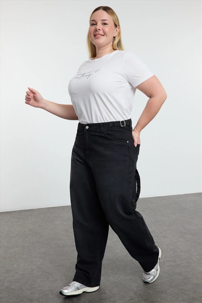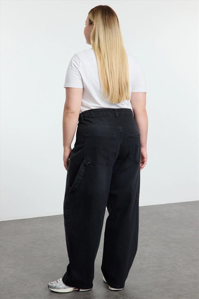 Siyah Yüksek Bel Boru Paça Büyük Beden Jean TBBAW25CJ00034