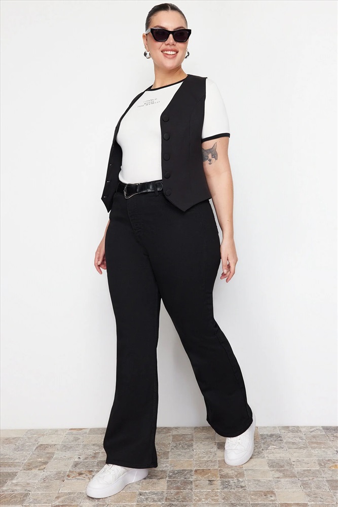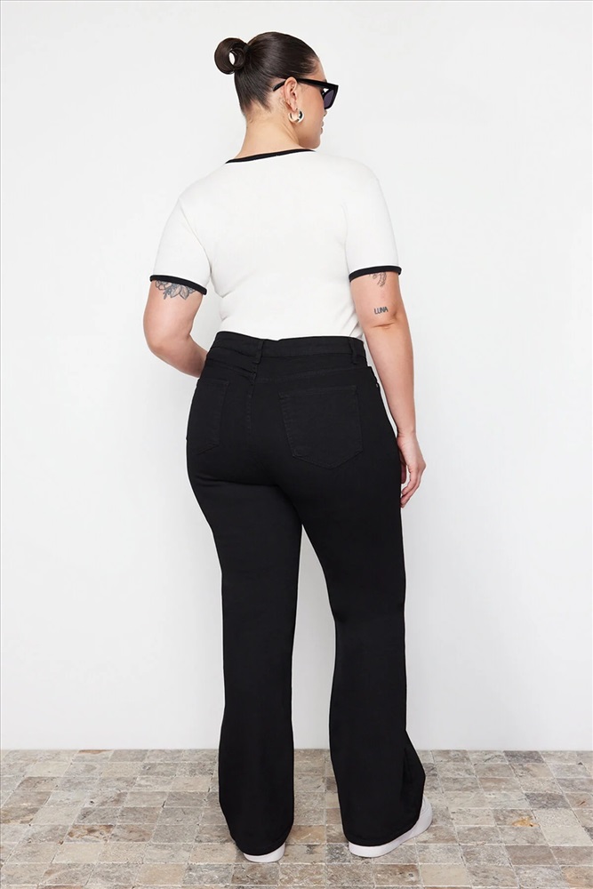 Siyah Yüksek Bel Esnek Kumaş İspanyol Paça Flare Fit Jeans TBBAW23JE00001