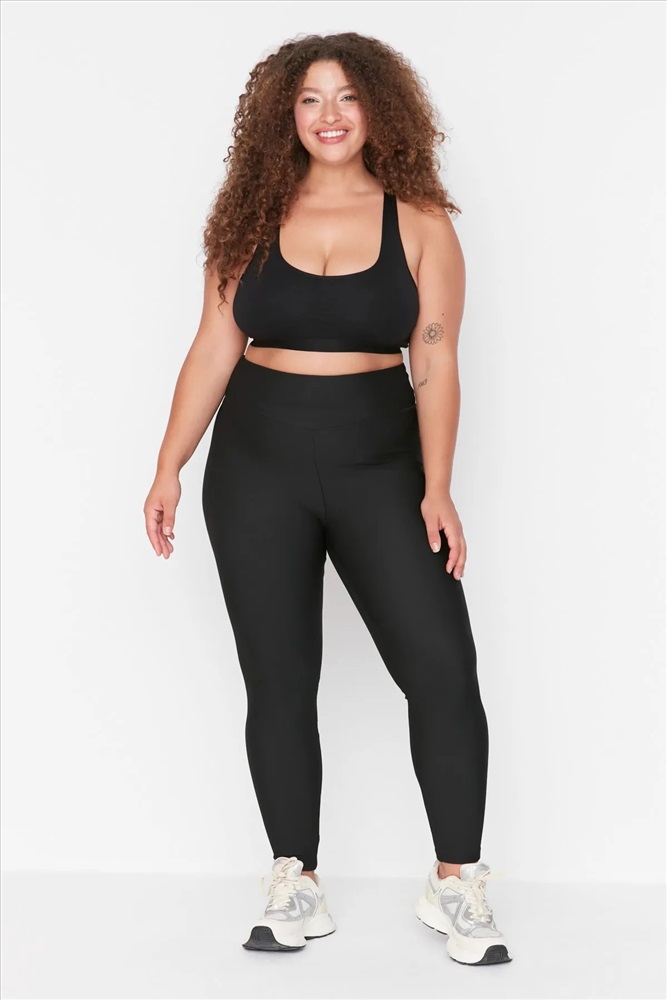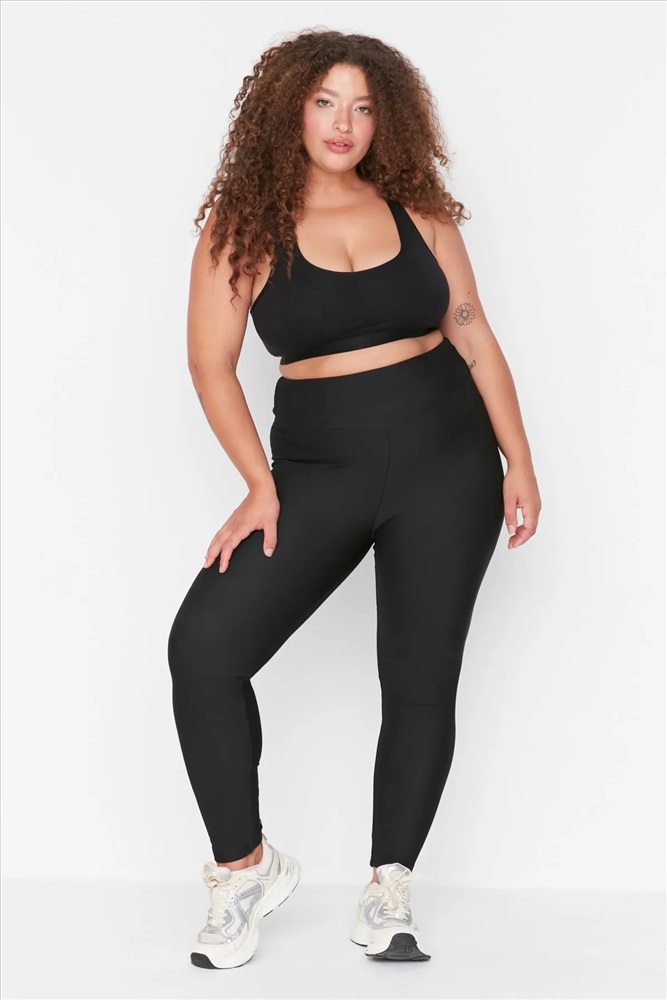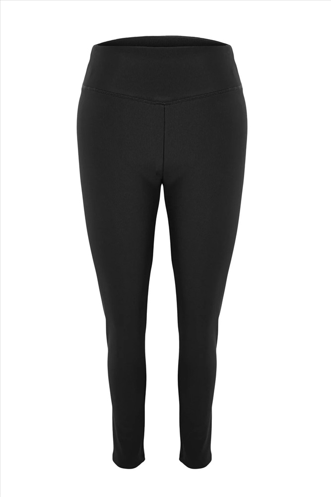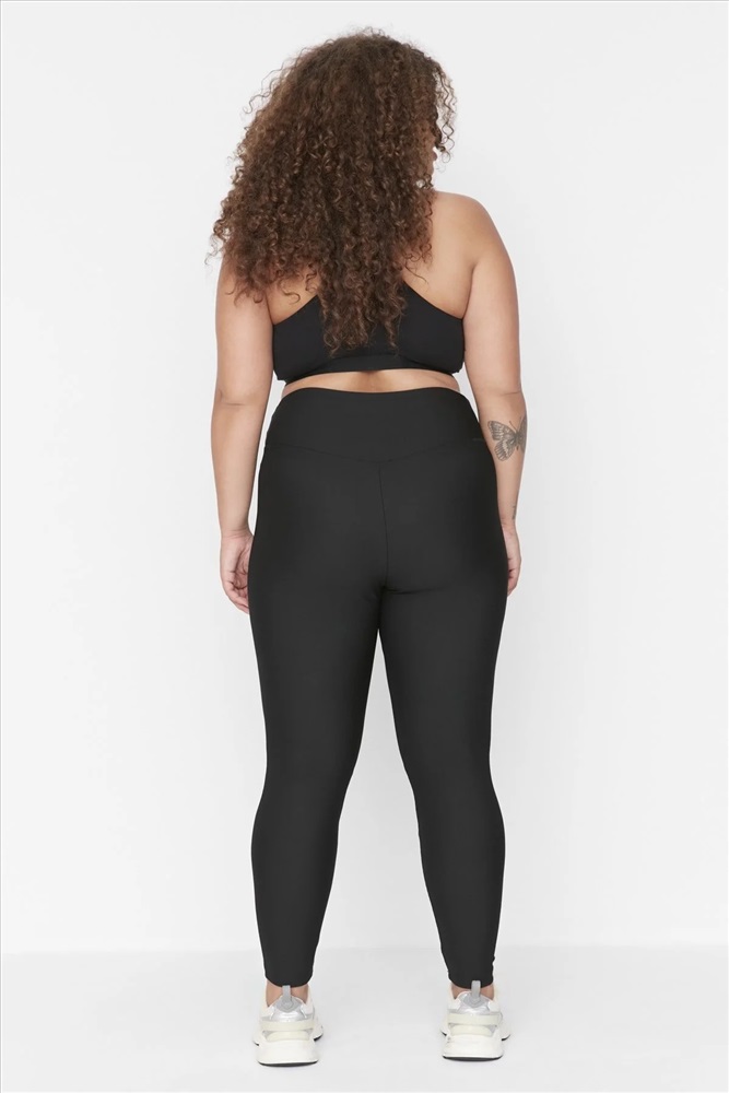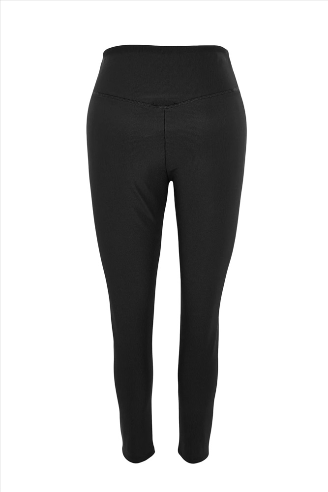 Siyah Yüksek Bel Fitilli Örme Büyük Beden Tayt TBBAW23AY00009