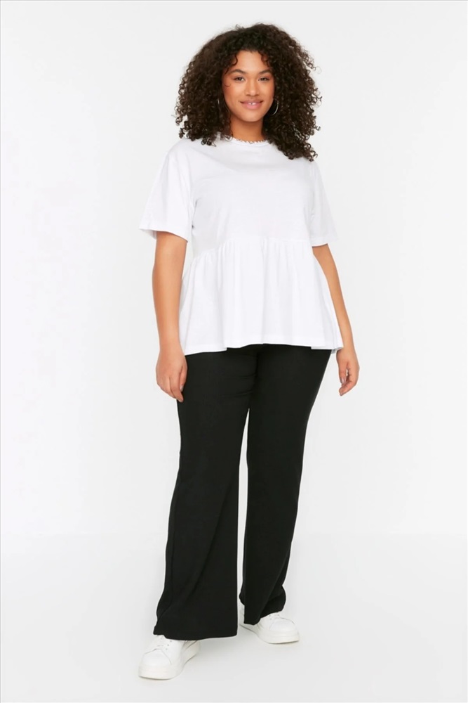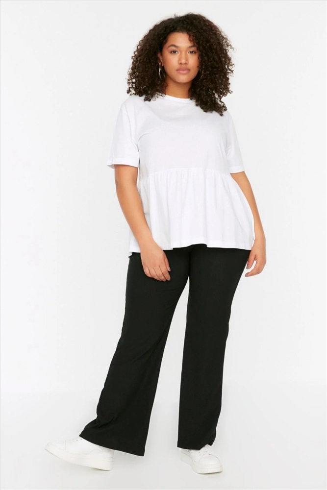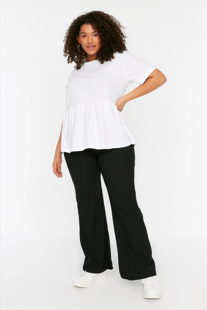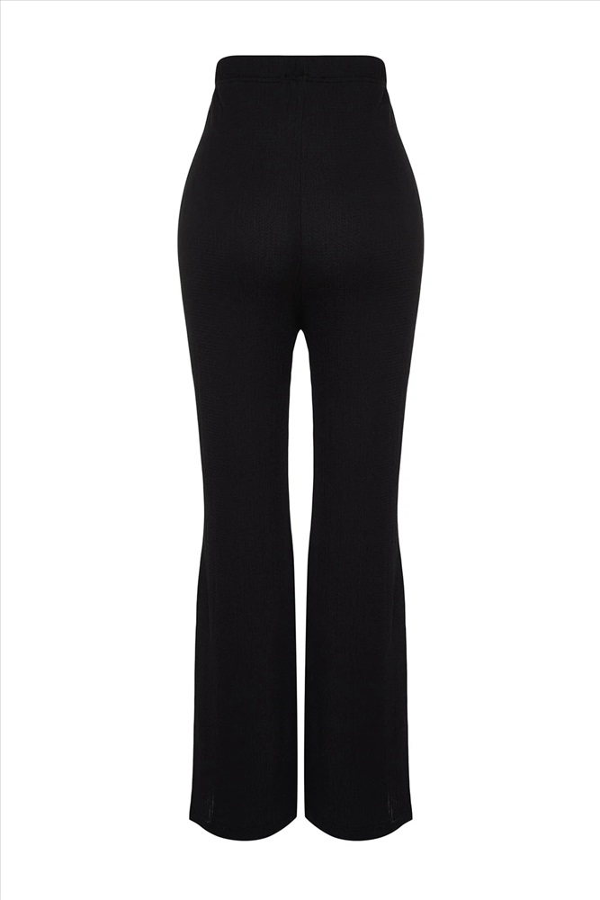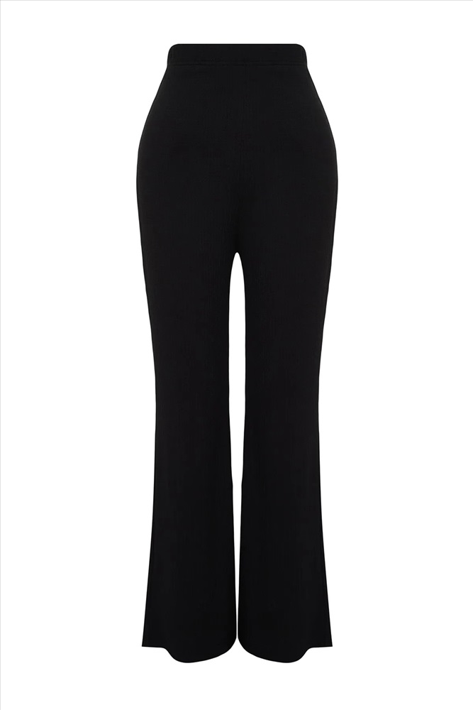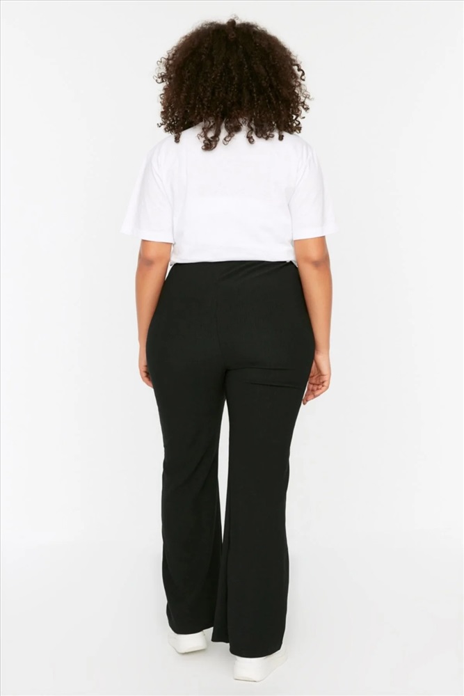 Siyah Yüksek Bel Flare İspanyol Paça Örme Büyük Beden Pantolon TBBSS22PL0416