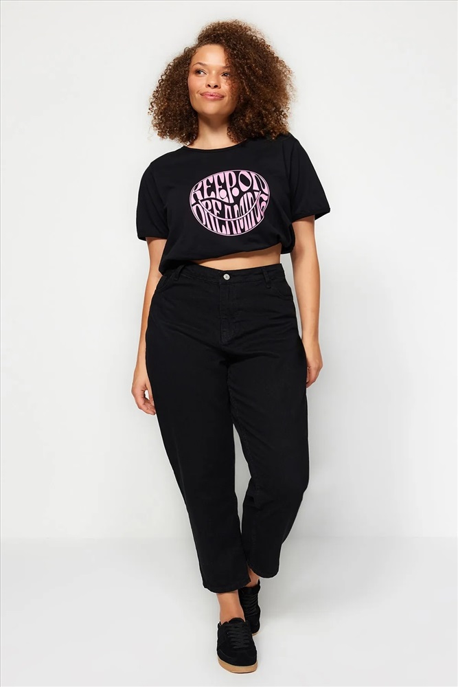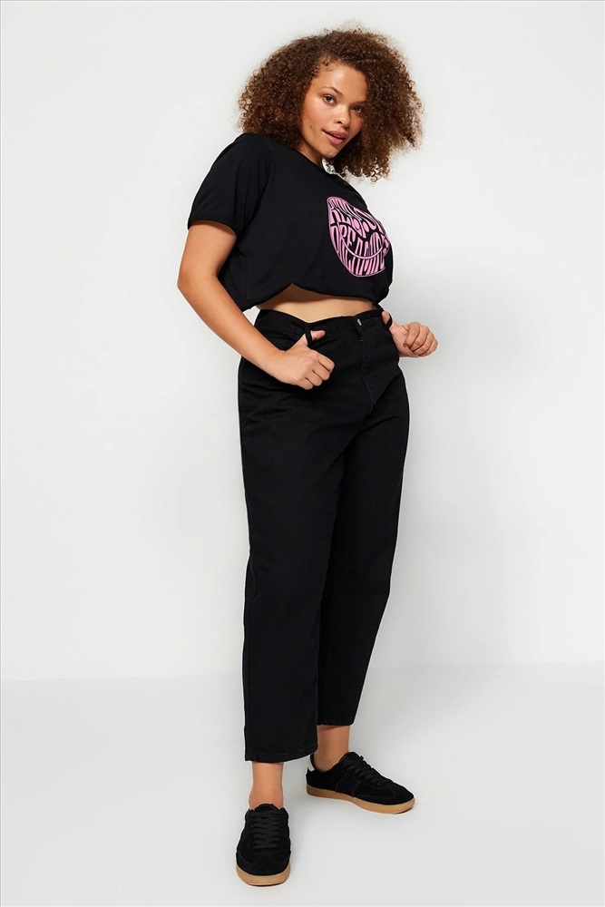 Siyah Yüksek Bel Mom Fit Jeans TBBSS23CJ00038