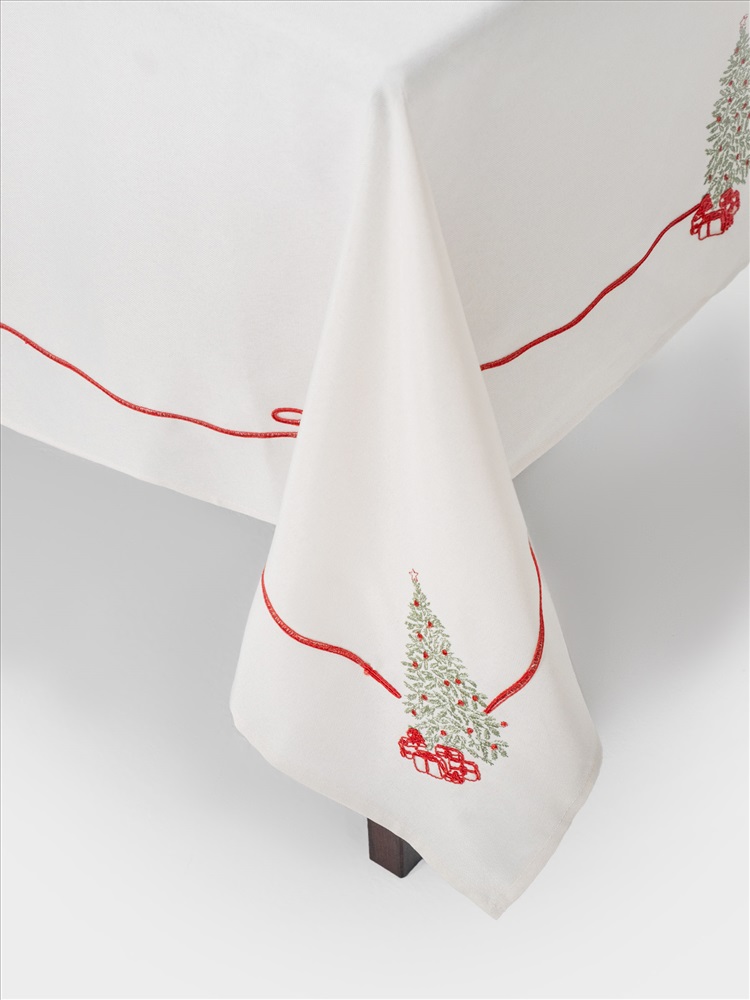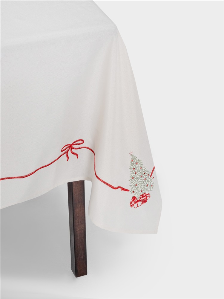Скатерть, 160х160 см, полиэстер, бежевая, Елка с подарками, Festival
