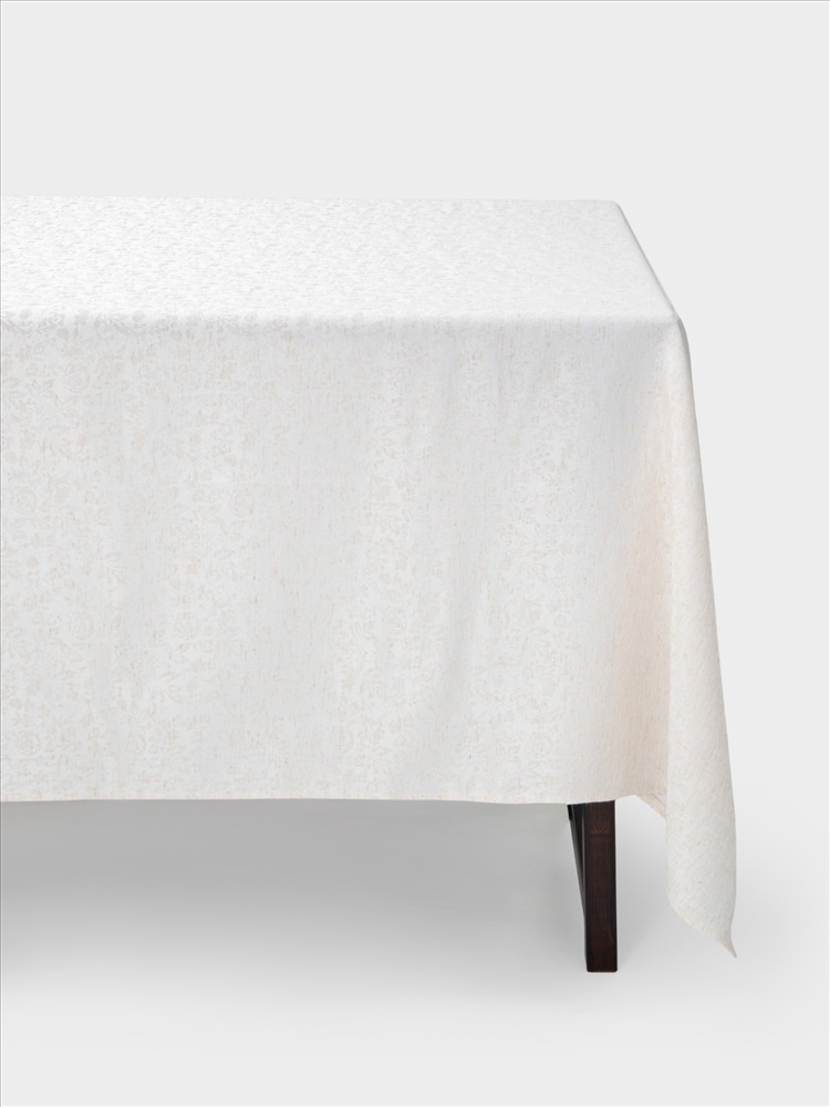 Скатерть. Размер: 160х160 см. Состав: 92% полиэстер, 8% лен. Рекомендации по уходу: стирка при температуре до 30°C; не отбеливать; гладить при низкой температуре (до 110°C), без пара; химчистка запрещена; не применять барабанную сушку.