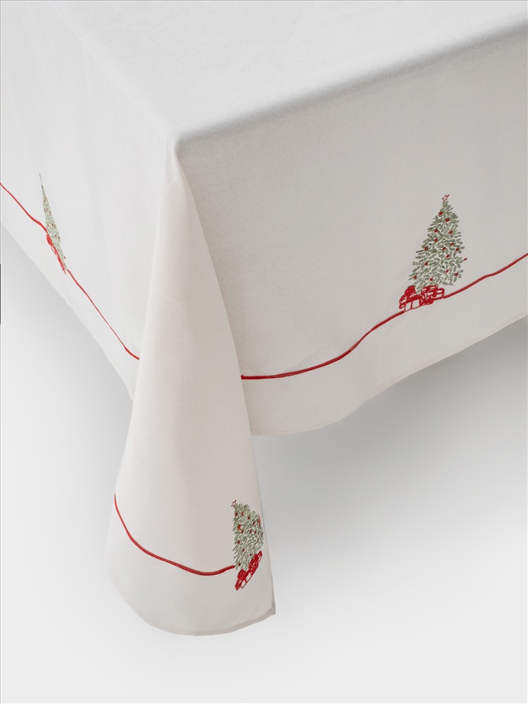 Скатерть, 170х250 см, полиэстер, бежевая, Елка с подарками, Festival