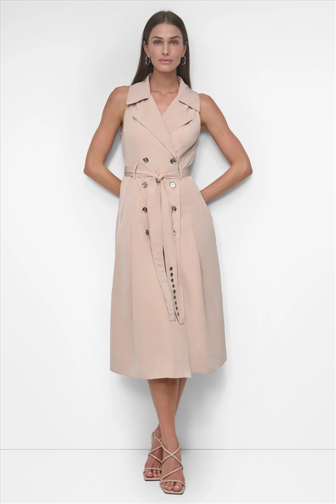 SLEEVELESS TECH COTTON BELTED MIDI DRESS