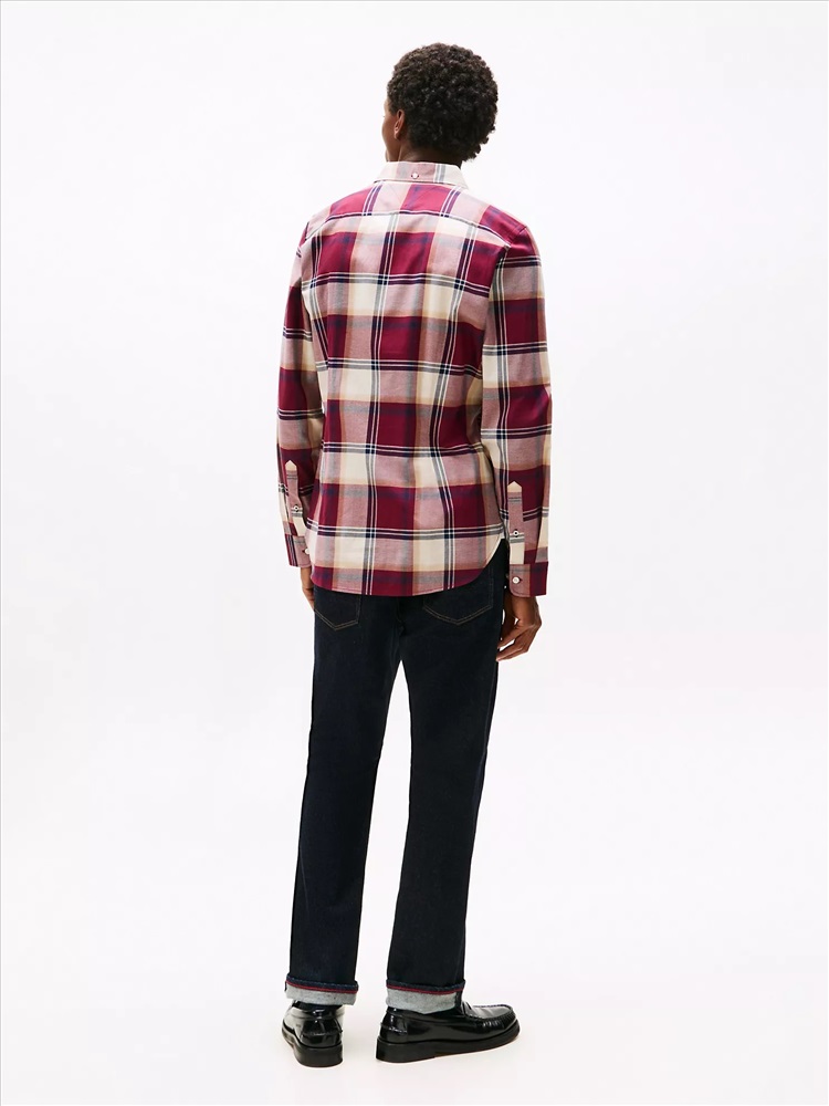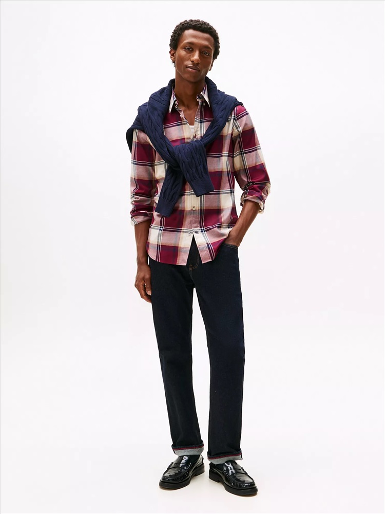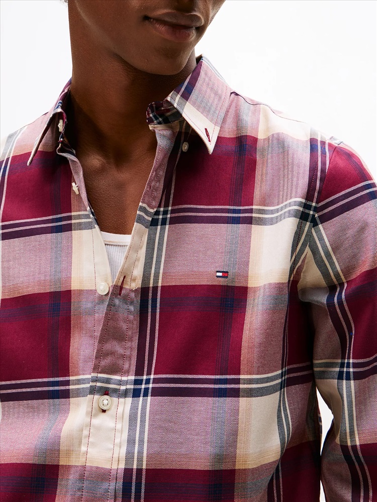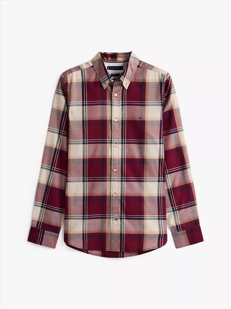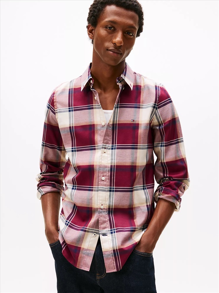 Tommy Hilfiger men's shirt. Capture that easy-going fall aesthetic in our durable herringbone shirt. Made from stretch cotton for comfort, this top is distinguished by a seasonal check print.