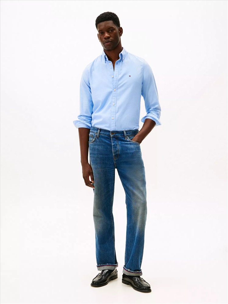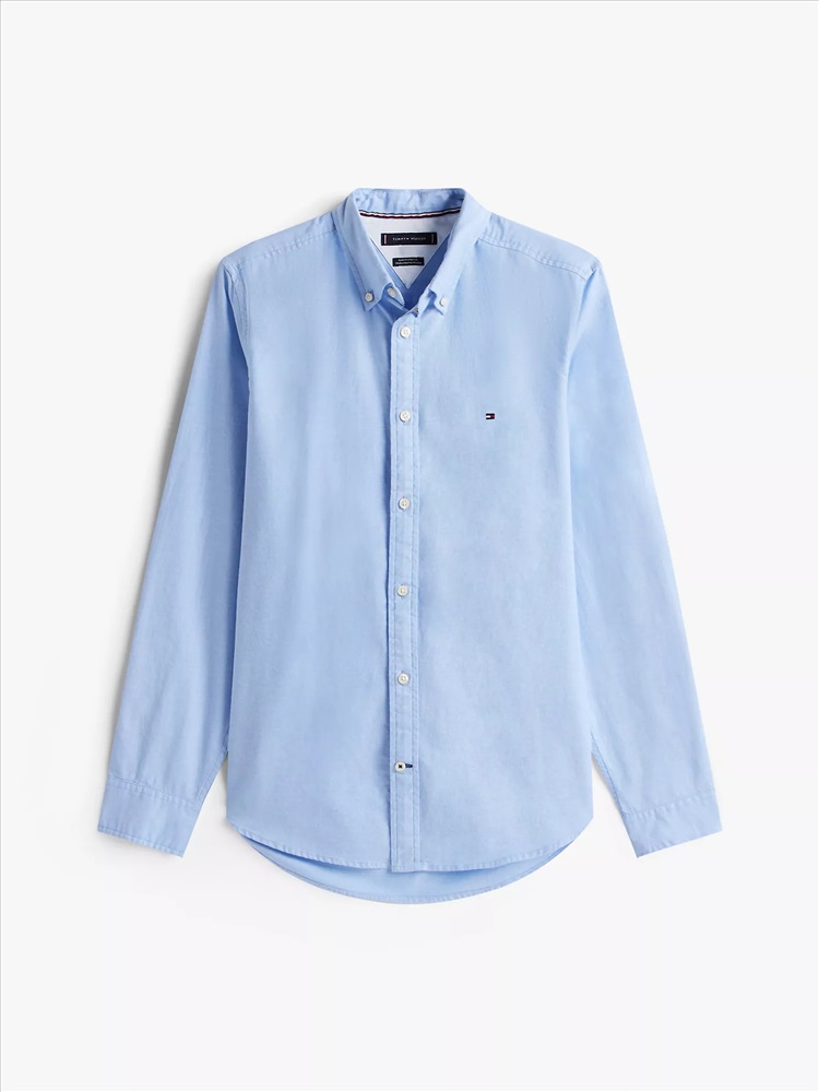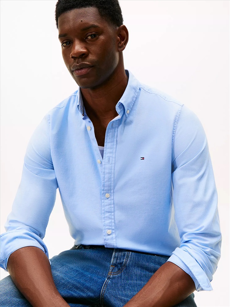 Tommy Hilfiger men's shirt. Embrace classic, easy-going style with this Oxford shirt, distinguished by its flattering slim fit and our microflag.