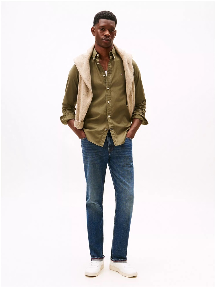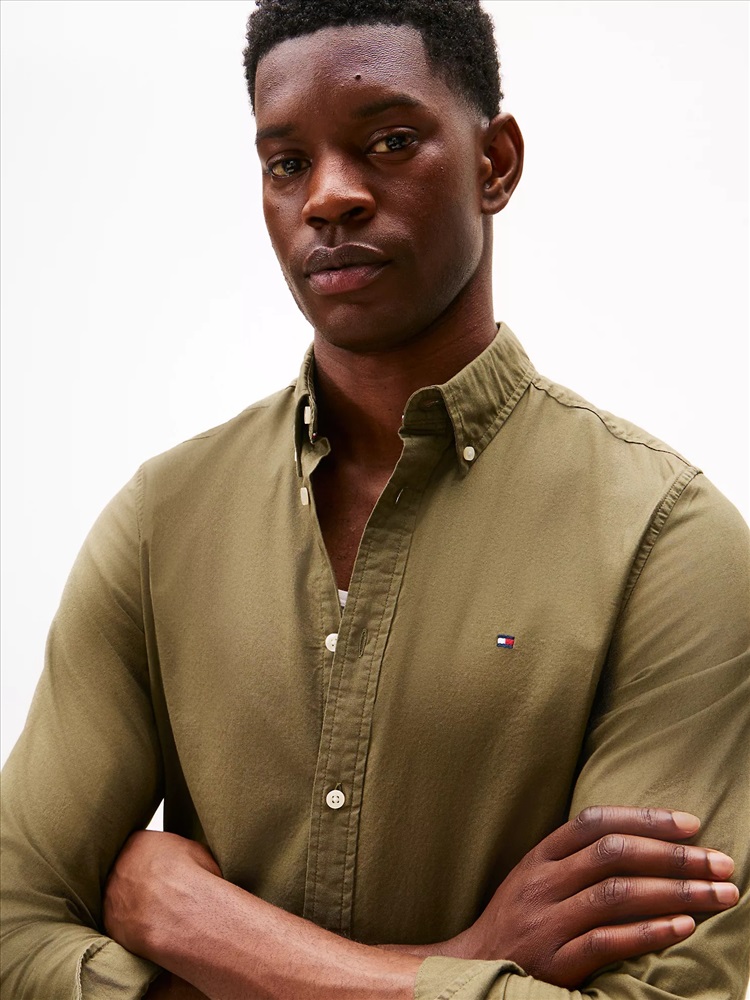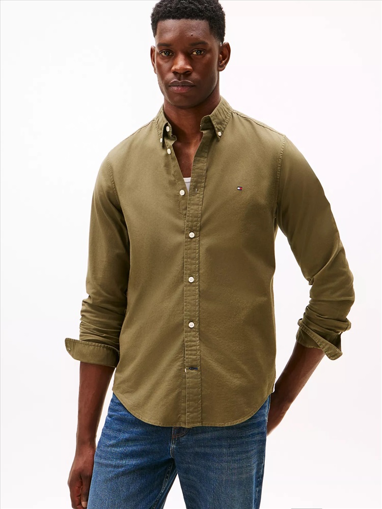 Tommy Hilfiger men's shirt. Embrace classic, easy-going style with this Oxford shirt, distinguished by its flattering slim fit and our microflag.