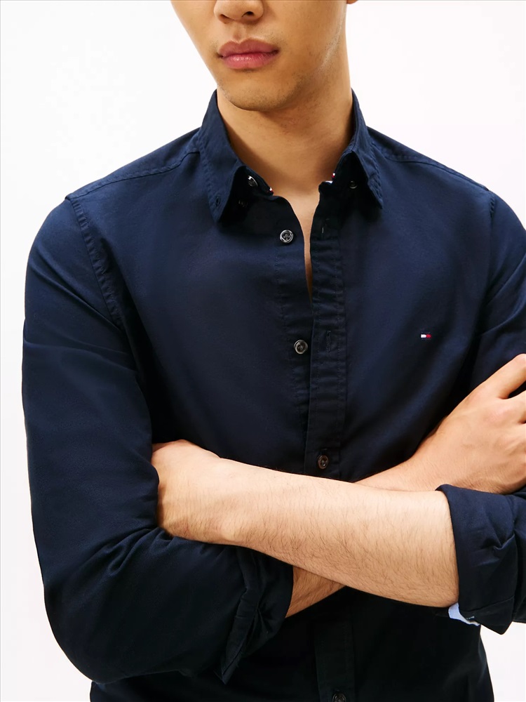 Tommy Hilfiger men's shirt. Embrace classic, easy-going style with this Oxford shirt, distinguished by its flattering slim fit and our microflag.