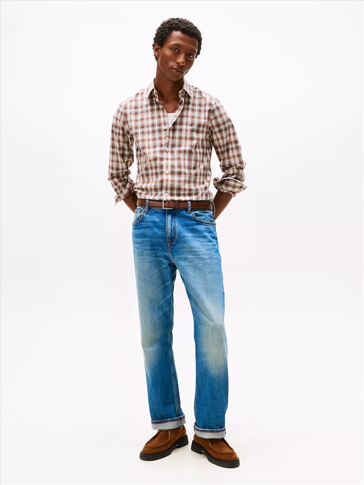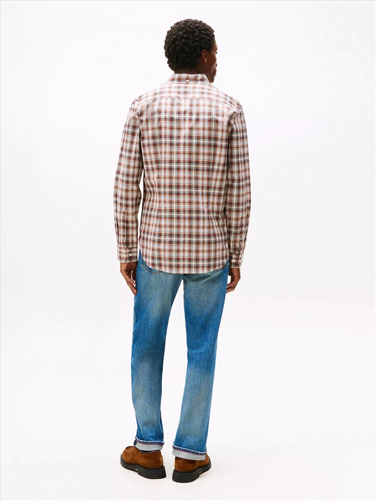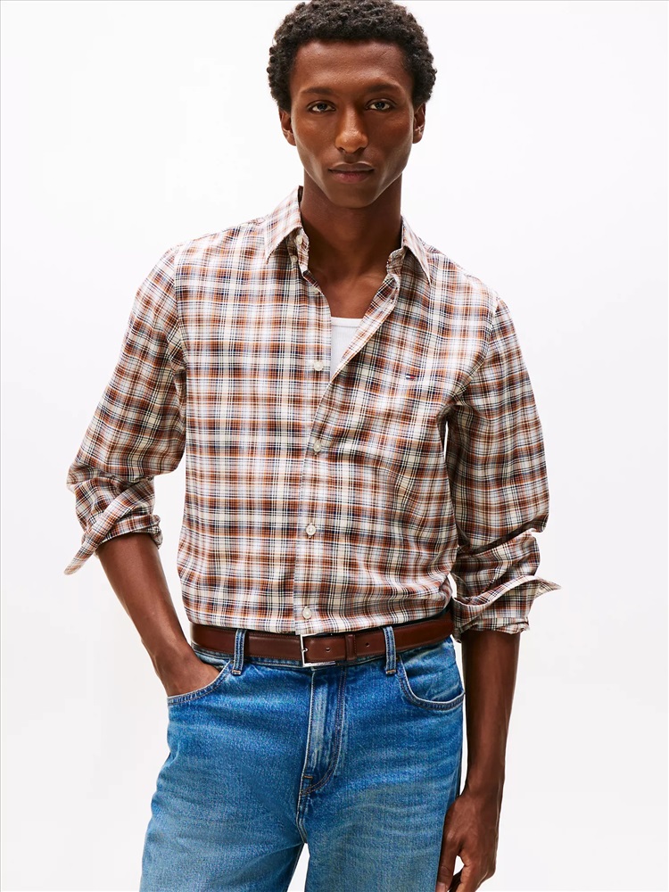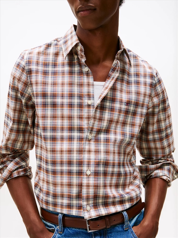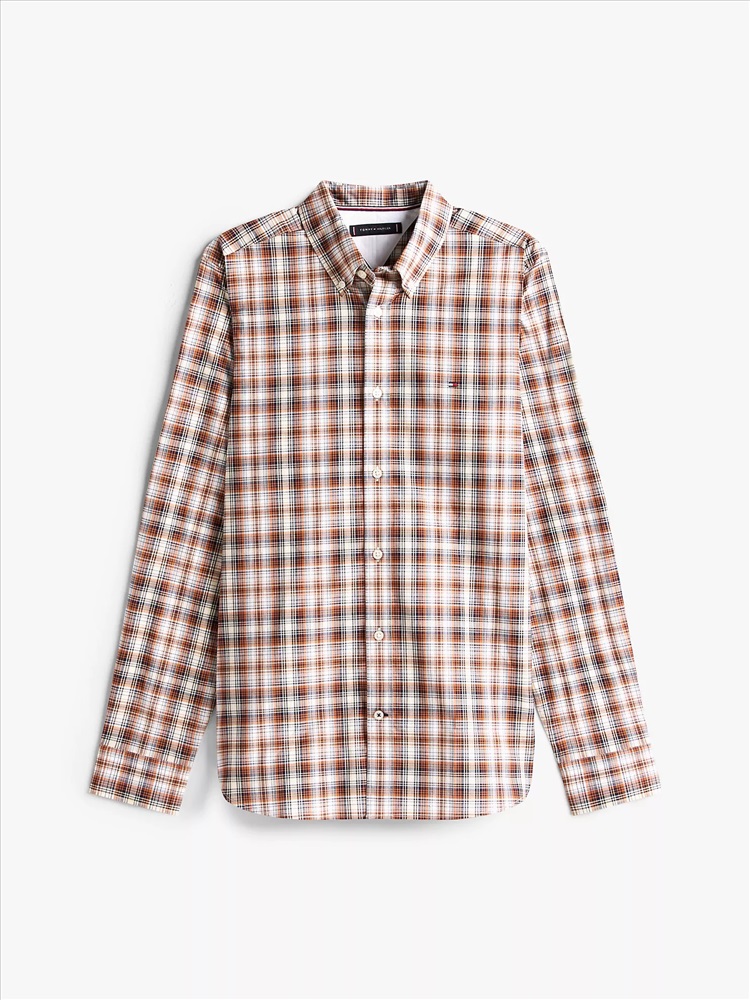 Tommy Hilfiger men's shirt. Our All-Day Shirt is crisp, soft, is and easy to iron (making life a lot easier). Designed in a plaid print, this button-down is cut in a trim fit and made from a stretch-cotton blend for comfort.