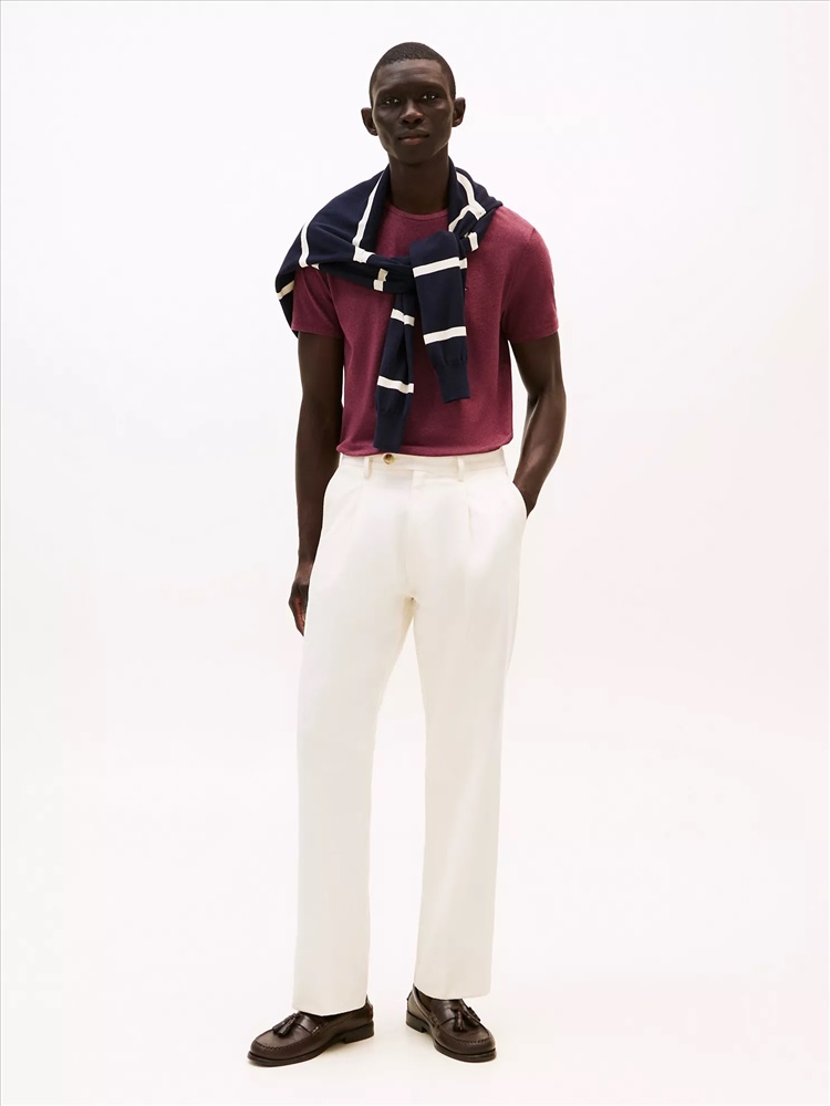 Tommy Hilfiger men's T-shirt. Made from stretch cotton for ease of movement, our slim-cut tee fits just right. It might be a wardrobe basic, but it's much more than that. It's the perfect year-round foundation layer that also works well on its own with jeans or chinos.