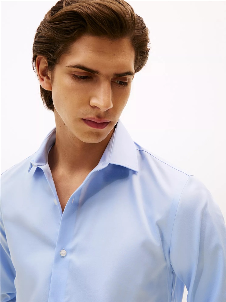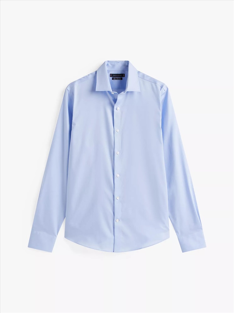 Tommy Hilfiger men's dress shirt. Ideal for the office, our slim-cut shirt is made from cotton twill blended with THFlex stretch fibers for extra stretch and structure.