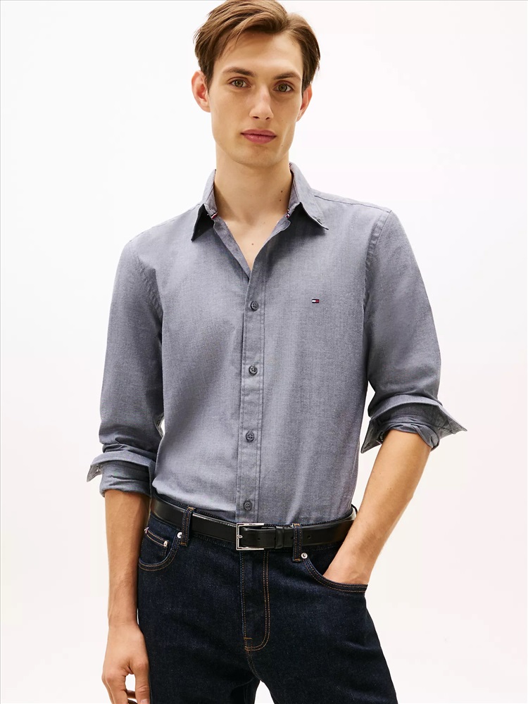Tommy Hilfiger men's shirt. Ideal for the office, our slim-fit shirt is made from cotton twill blended with THFlex stretch fibers for extra stretch and structure.
