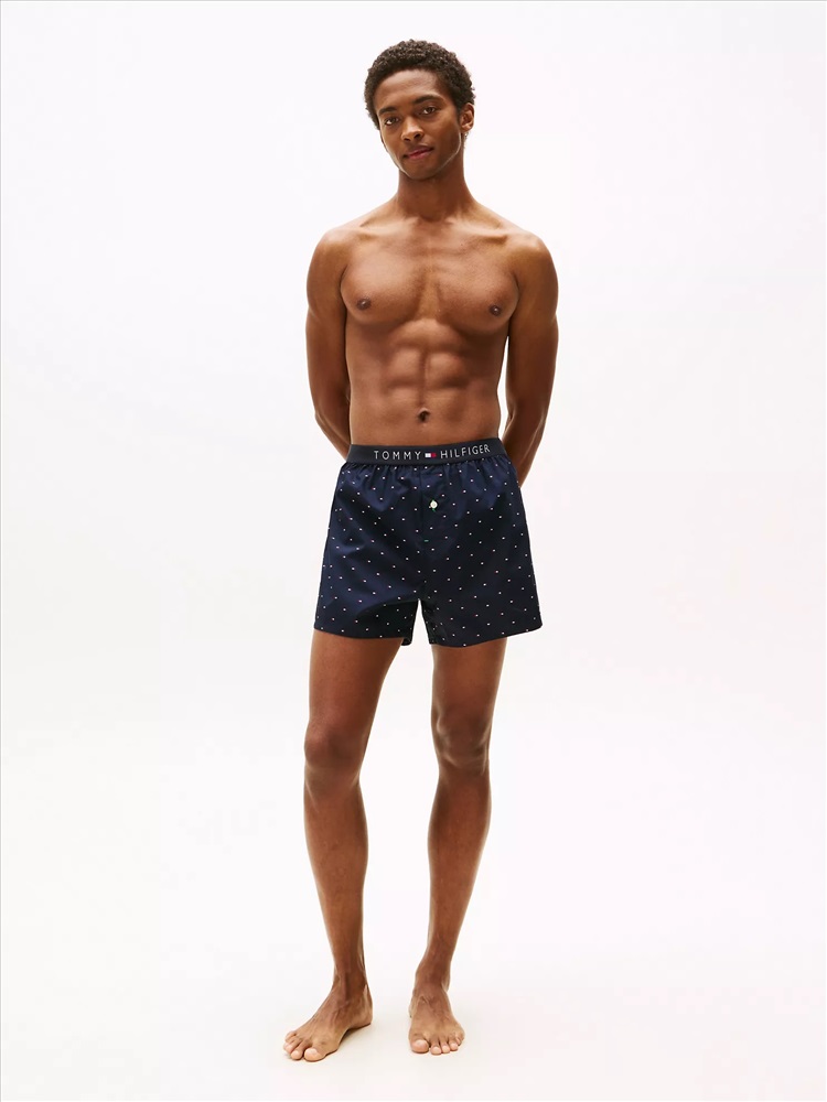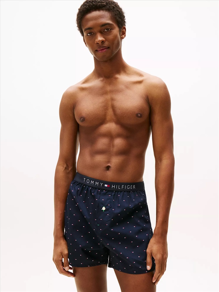 Tommy Hilfiger men's underwear. These slim-fitting, comfortable, breathable woven boxers are made of pure cotton, and designed for ease of movement.