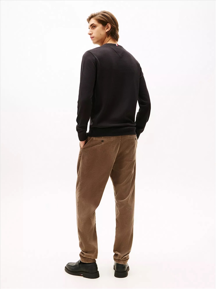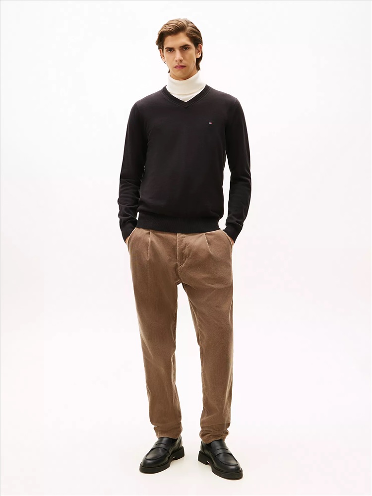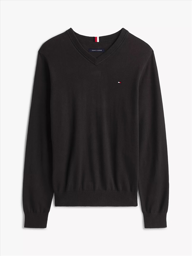 Tommy Hilfiger men's sweater. Made from soft cotton in a smooth jersey stitch, this V-neck is the perfect lightweight layer. It's designed with rib-knit trim and touches of subtle branding for a versatile, timeless look.