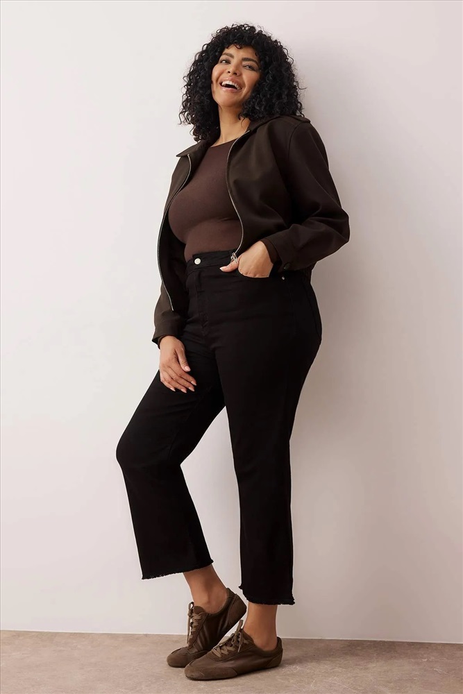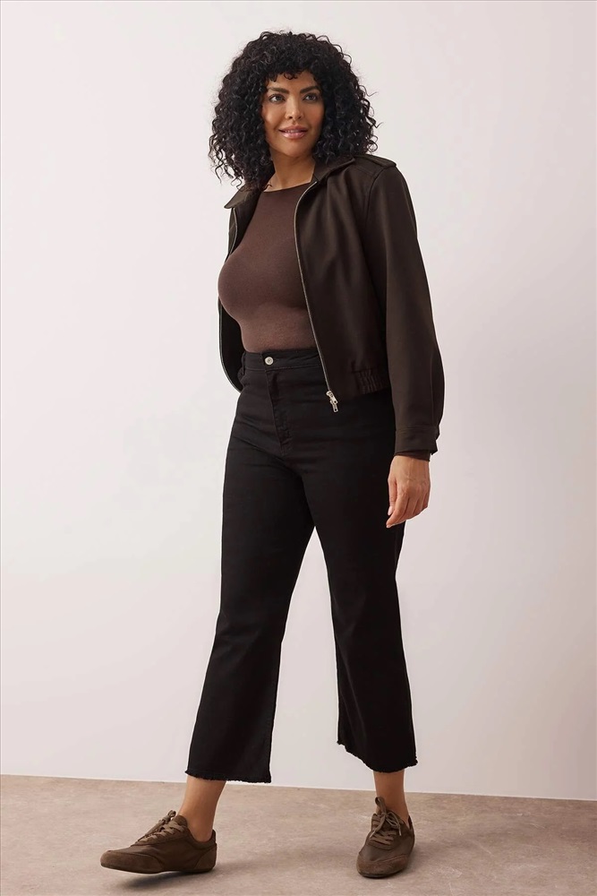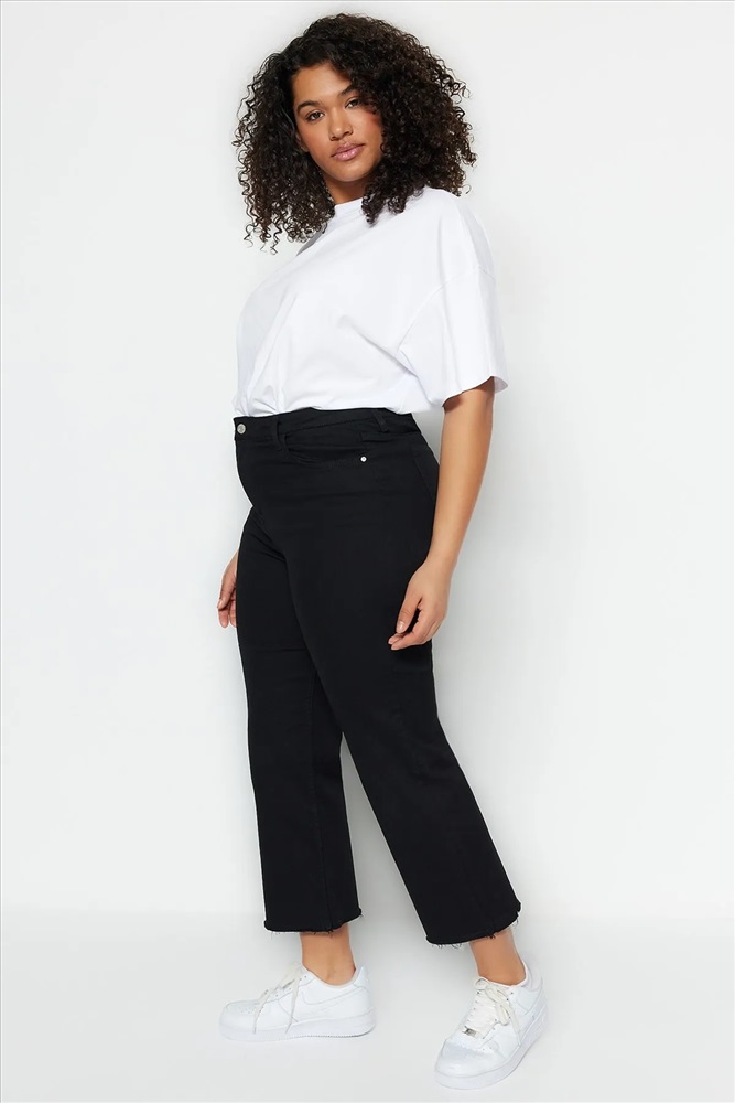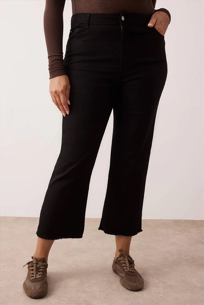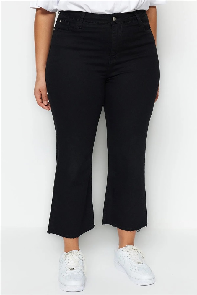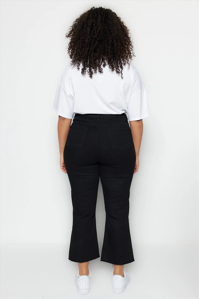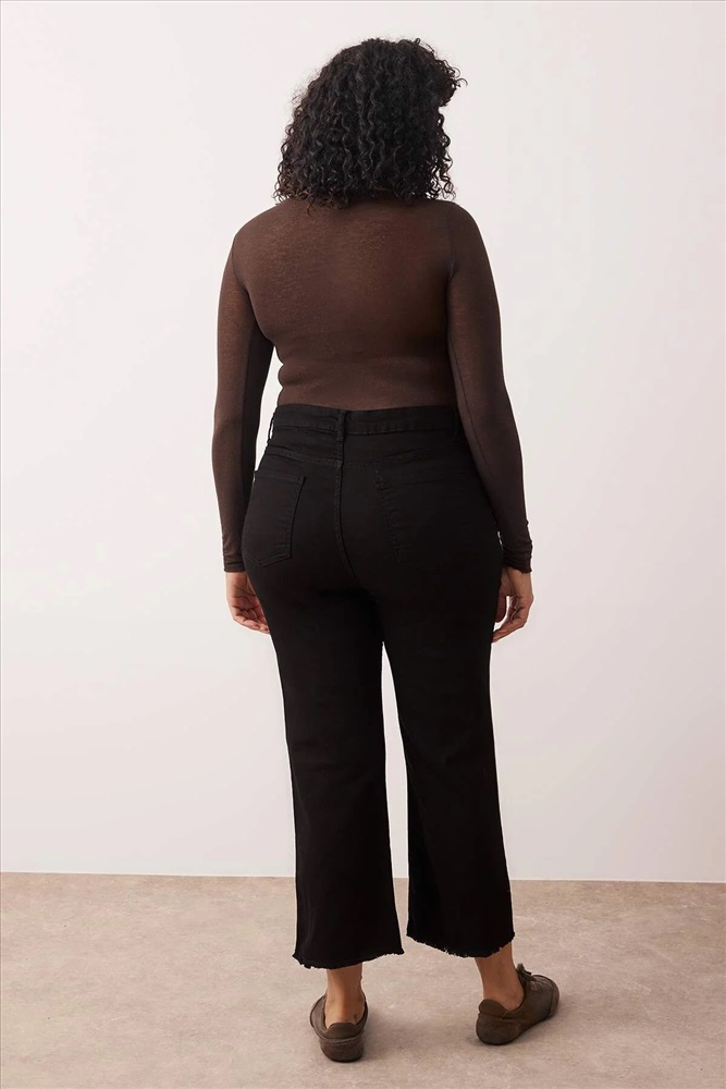 Solmayan Siyah Yüksek Bel Comfort Kısa Paça Culotte Fit Jeans TBBSS23AR00014