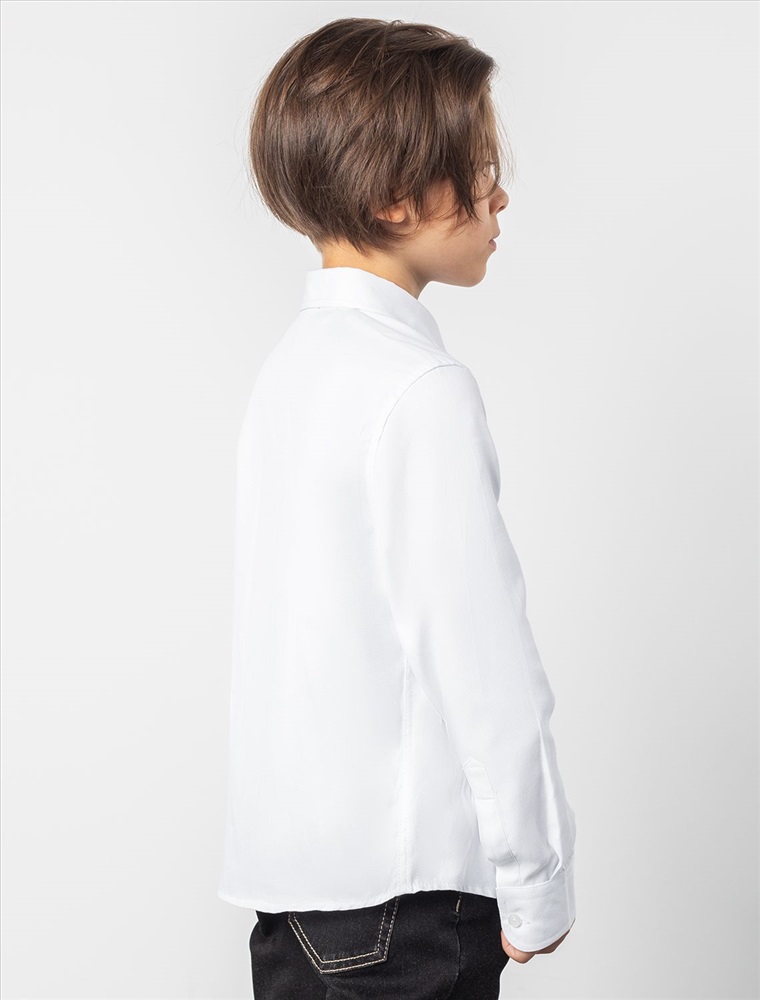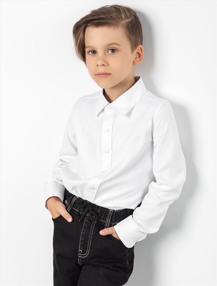 Белая сорочка с отложным воротником выполнена из хлопка фактурного плетения, добавление ПЭ в состав изделия, способствует формоустойчивости. Сорочка хорошо выглядит не только в заправленном виде, но и на выпуск. Легко комбинируется с любыми моделями школьной формы. Изделие украшено вышитым логотипом бренда.