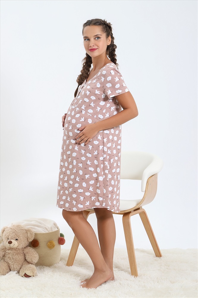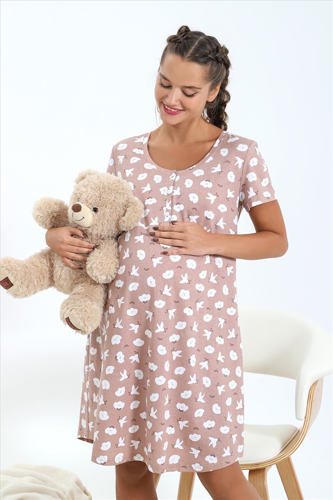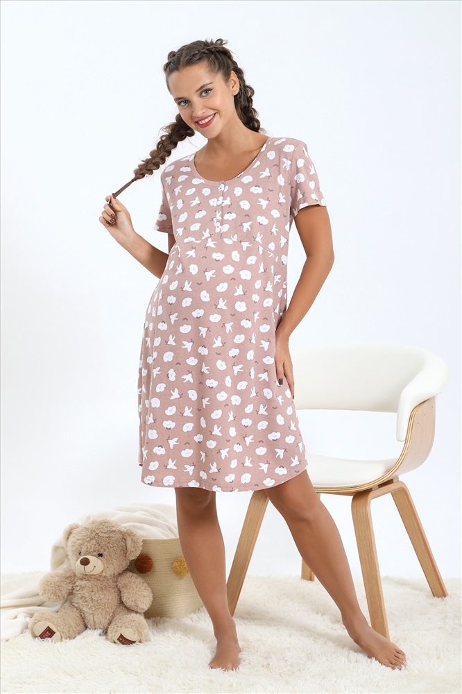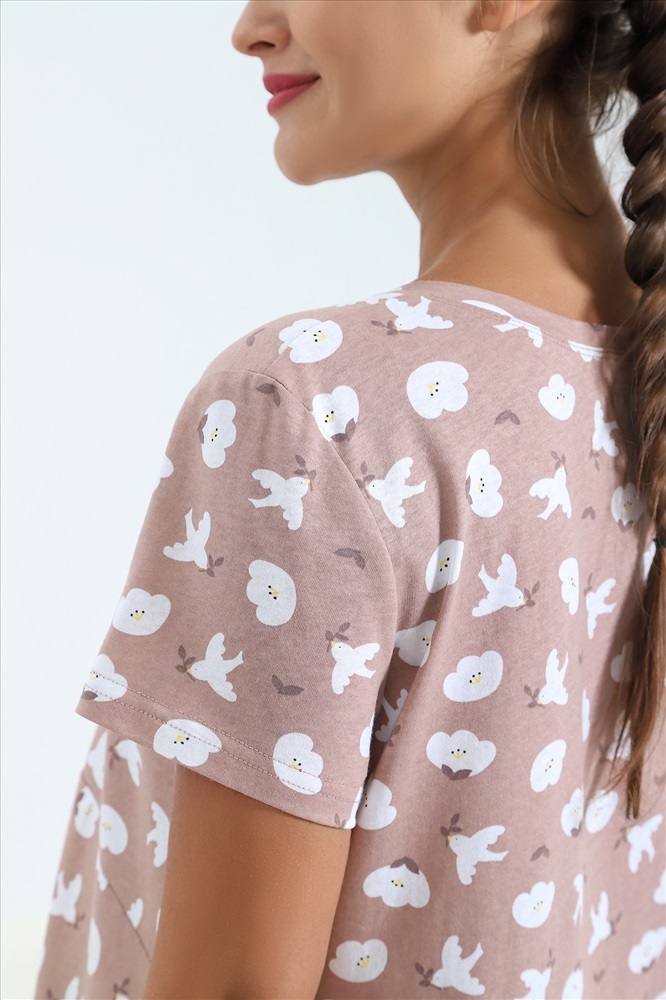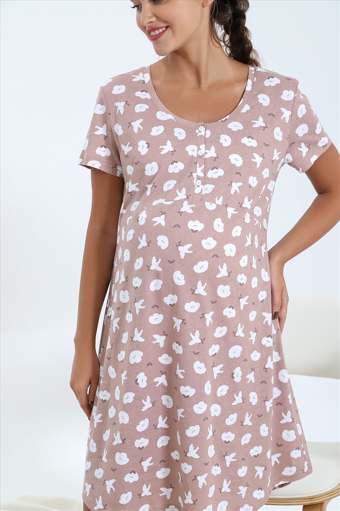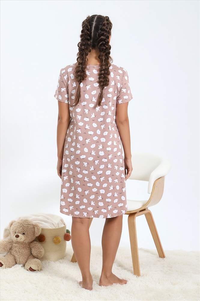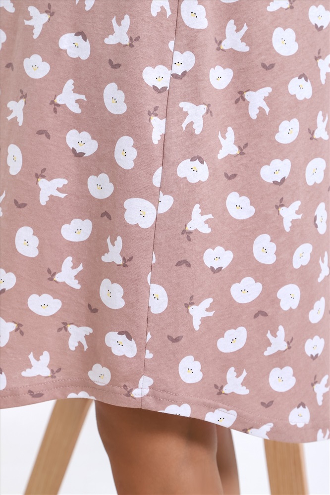 Ткань: Кулирка Кулирка - это самое гладкое и тонкое трикотажное полотно из чистого хлопка. С лицевой стороны ткань «кулирка» выглядит как «вертикальные косички», орнамент изнаночной стороны напоминает «кирпичную кладку». Свойства кулирного трикотажа- воздухопроницаемость, гигроскопичность, не теряя своей формы, практически не тянется в длину и хорошо растягивается в ширину, не образует складки. Сорочка женская из гладкокрашенного трикотажного полотна "кулирка" слегка расширенная книзу, с короткими втачными рукавами и горловиной овальной формы, обработанной притачной бейкой и фигурной линией низа. Перед - с отрезной кокеткой с разрезом по центру, обработанным притачными узкими планками и скрепленными между собой тремя пуговицами.