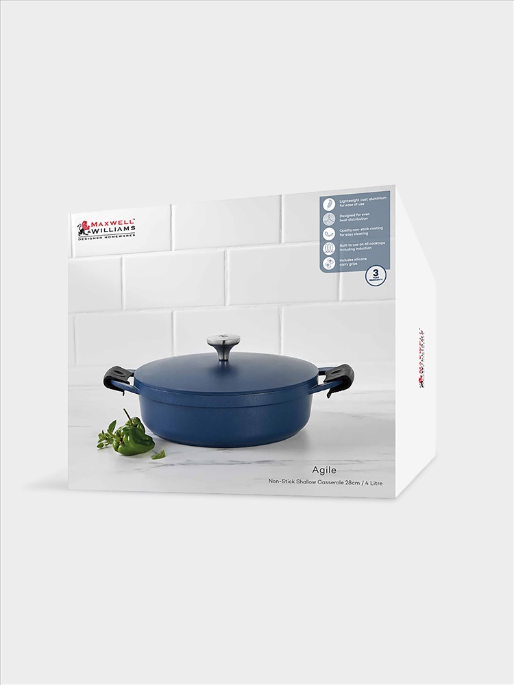 Бренд: MAXWELL & WILLIAMS Сотейник, 28 см, 4,0 л, с крышкой, с покрытием, алюминий, синий, Agile. Материал: алюминий (литой) с антипригарным покрытием. Сотейник из литого алюминия с антипригарным покрытием. Для всех типов плит, включая индукционные. Можно мыть в ПММ. Использовать в духовке до 210 градусов.
