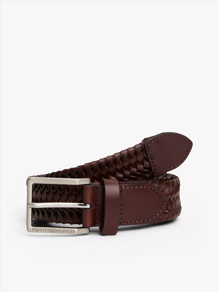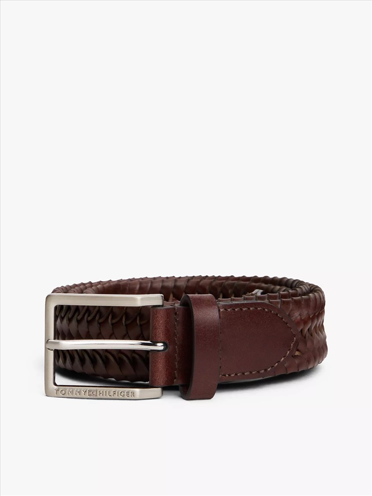 Tommy Hilfiger men's belt. This timeless square buckle belt is made from woven leather, ready to complete your casual looks with a tactile touch.