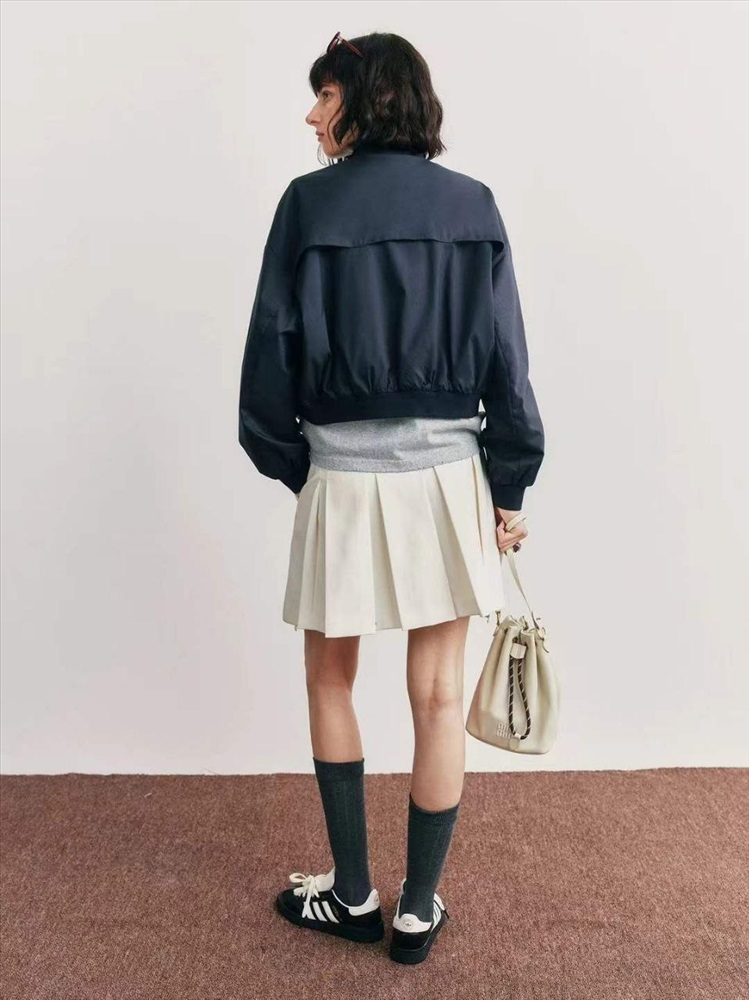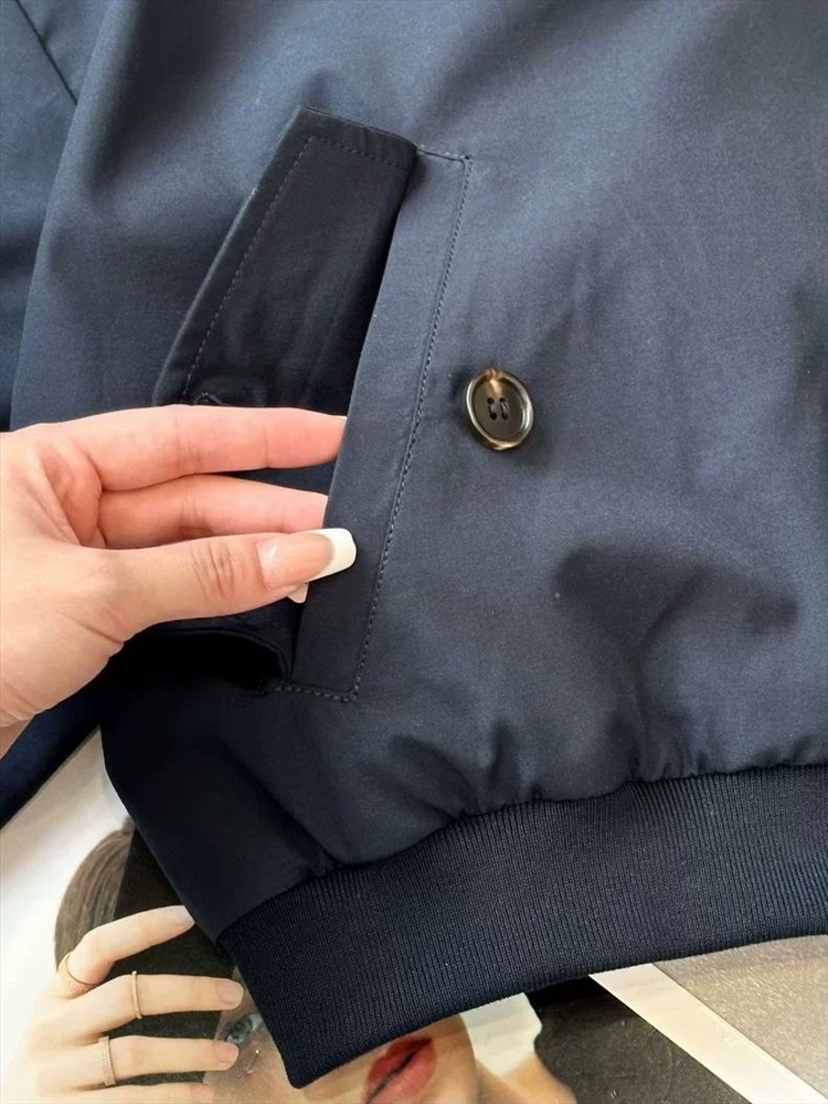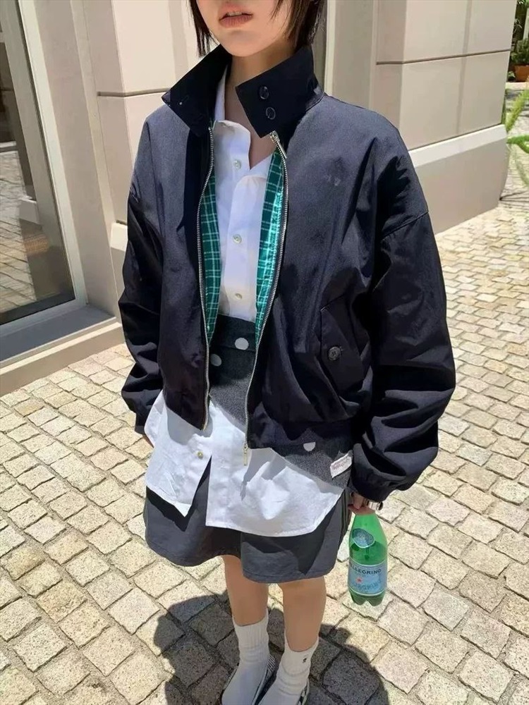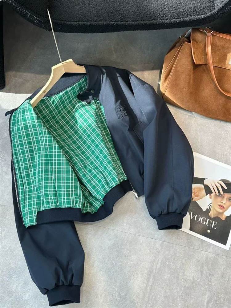 Держит форму и защищает от ветра. С ярким акцентом - зелёная подкладка в клетку из смесового хлопка.