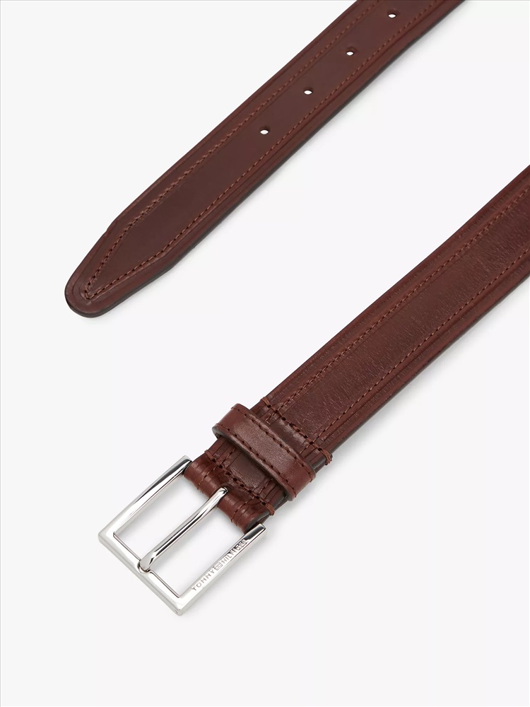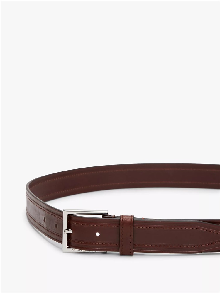 Tommy Hilfiger men's belt. For a polished, put-together look, complete your outfit with our premium leather belt accented by a square buckle and understated stitched detailing. Part of our Tommy Jeans collection.