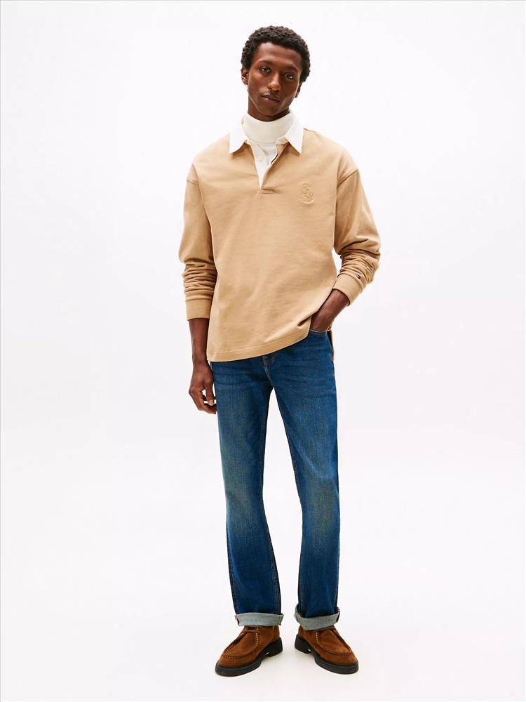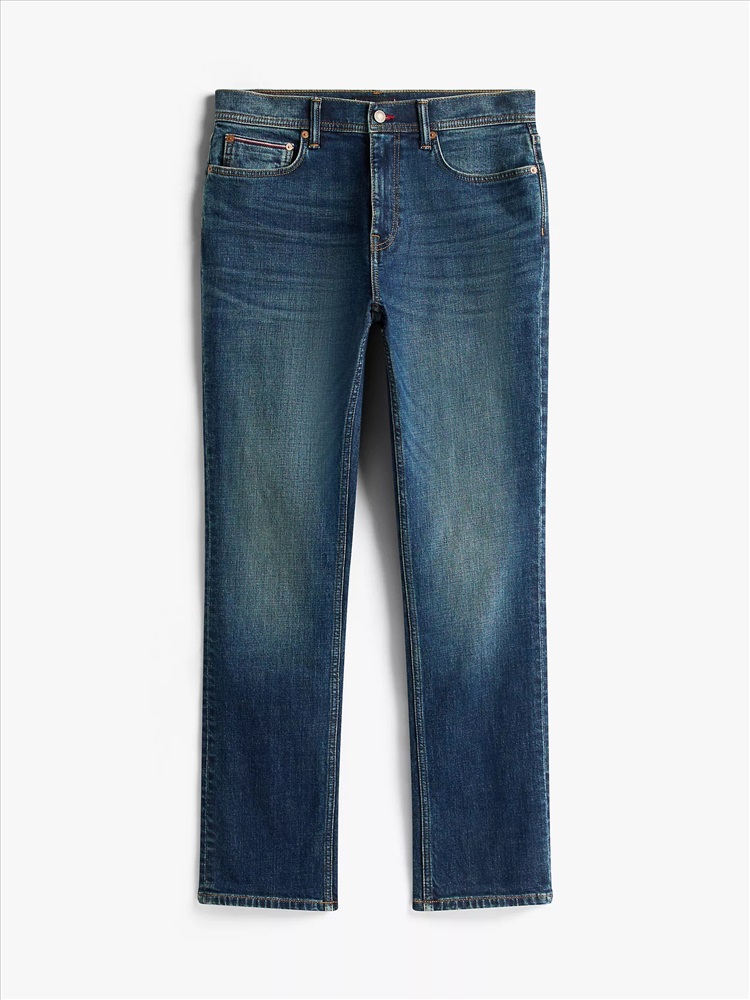 Tommy Hilfiger men's jean. Cut in our fan-favorite straight fit, these jeans are your go-to pair for the season. Made from premium denim with a touch of stretch, they feel comfortable and look good on you.