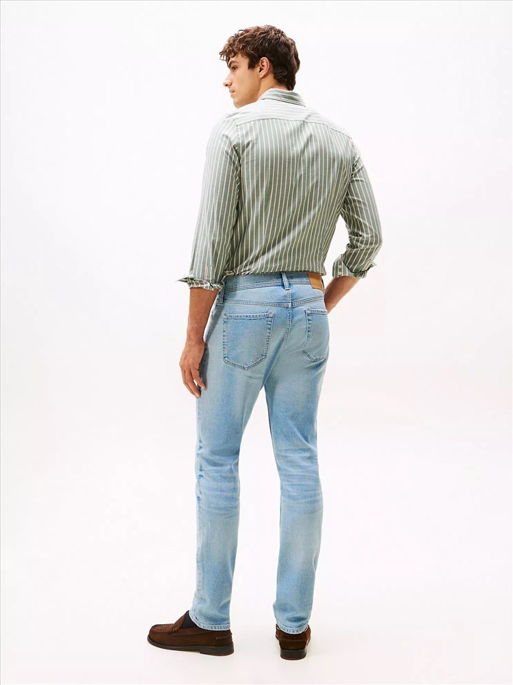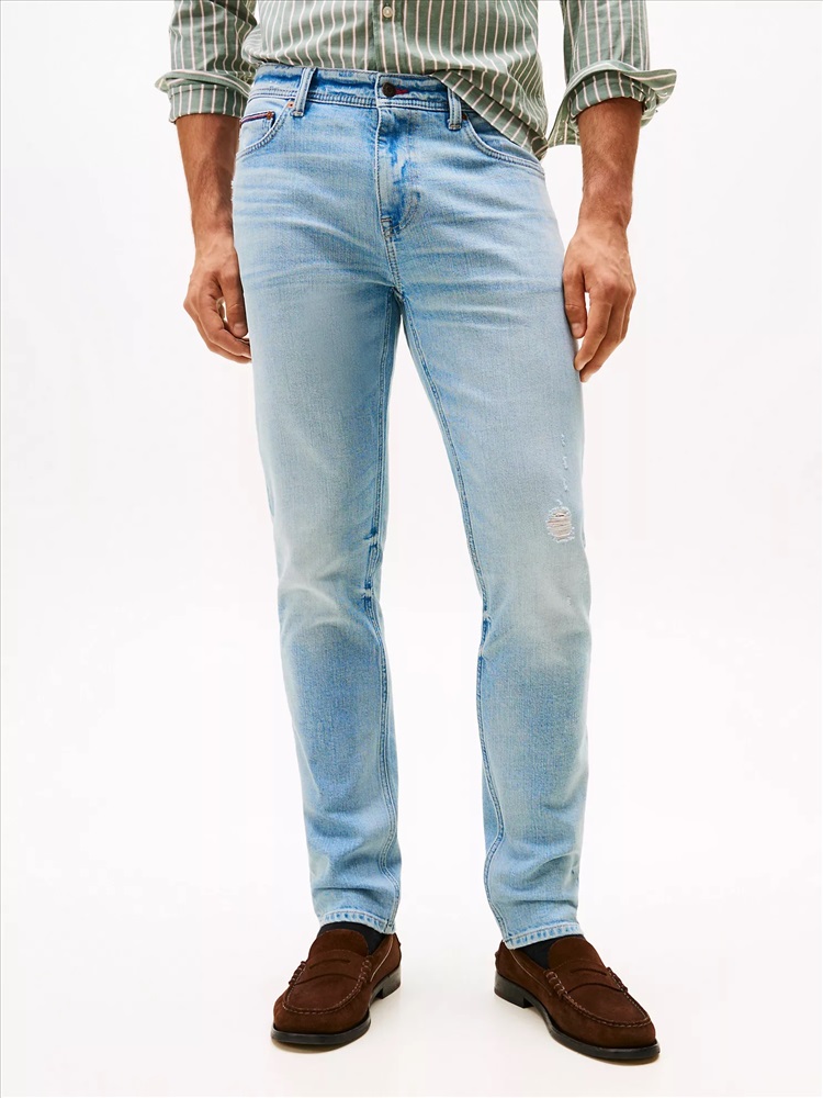 Tommy Hilfiger men's jean. Our slim fit classics are cut from premium denim with smooth, lightweight lyocell and added stretch for an extra comfortable fit.